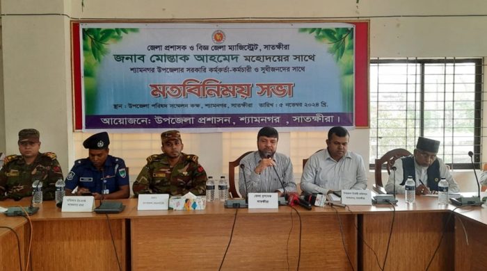 সাতক্ষীরার শ্যামনগরে সরকারী কর্মকর্তা-কর্মচারী ও সুধীজনদের সাথে নবাগত জেলা প্রশাসকের মতবিনিময় সভা অনুষ্ঠিত হয়েছে। ৫ নভেম্বর (মঙ্গলবার) বেলা ১১টায় উপজেলা পরিষদ কার্যালয়ের সম্মেলন কক্ষে মতবিনিময়সভা অনুষ্ঠিত হয়। উপজেলা নির্বাহী অফিসার ডা: সঞ্জিব দাসের সভাপতিত্বে প্রধান অতিথির হিসেবে উপস্থিত ছিলেন সাতক্ষীরা জেলা প্রশাসক ও বিজ্ঞ জেলা ম্যাজিস্ট্রেট মোস্তাক আহমেদ।