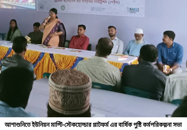 GAFSP/IFAD এর অর্থায়নে বাংলাদেশ সরকার কৃষি মন্ত্রণালয়ের লিডারশীপ বাস্তবায়কৃত RAINS প্রকল্পের আওতায় পুষ্টি সংবেদনশীল মাল্টি স্টেকহোল্ডার প্লাটফর্ম গঠন করেছে। জাতীয় বার্ষিক পুষ্টি কর্ম পরিকল্পনায় ইউনিয়নের চাহিদা গুলোকে তুলে ধরার লক্ষ্যে বার্ষিক পুষ্টি কর্মপরিকল্পনা ২০২৫-২৬ সভার আয়োজন করা হয়।