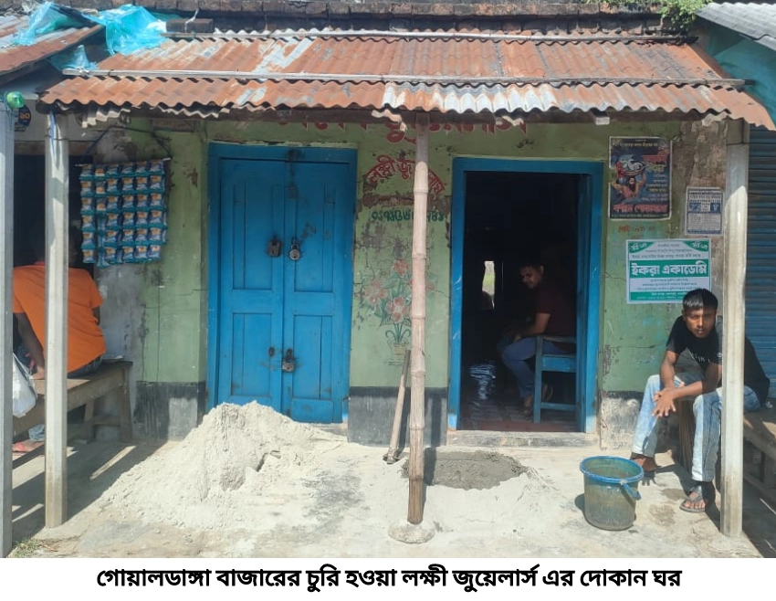 সরেজমিন থেকে ও পুলিশ সূত্রে জানা যায়, উপজেলার বড়দল ইউনিয়নের গোয়ালডাঙ্গা বাজারের অশোক কর্মকারের লক্ষী জুয়েলার্স এর দোকানের দুই দরজা ভেঙে দোকানের ভিতর থেকে পাঁচ মন ওজনের লোহার সিন্দুকসহ ৫ লক্ষ টাকার স্বর্ণালংকার চুরি করে নিয়ে যায়।