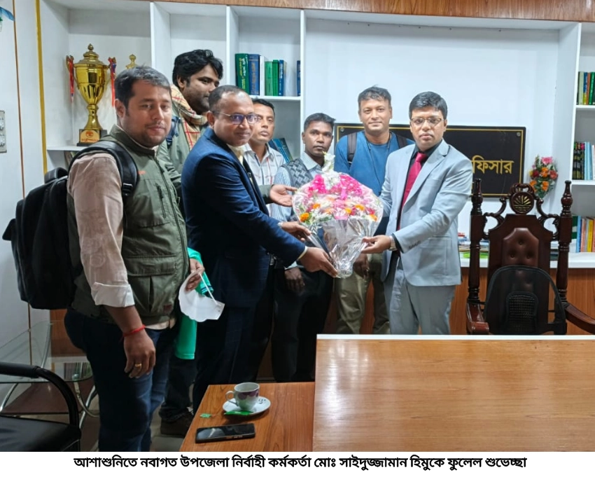 আশাশুনিতে নবাগত উপজেলা নির্বাহী অফিসার মোঃ সাইদুজ্জামান হিমুকে ফুলেল শুভেচ্ছা প্রদান করেছেন। বুধবার (৩ ডিসেম্বর) সকাল ১০টায় উপজেলা নির্বাহী অফিসারের কার্যালয়ে নবাগত ইউএনওকে ফুলেল শুভেচ্ছা প্রদান করা হয়।