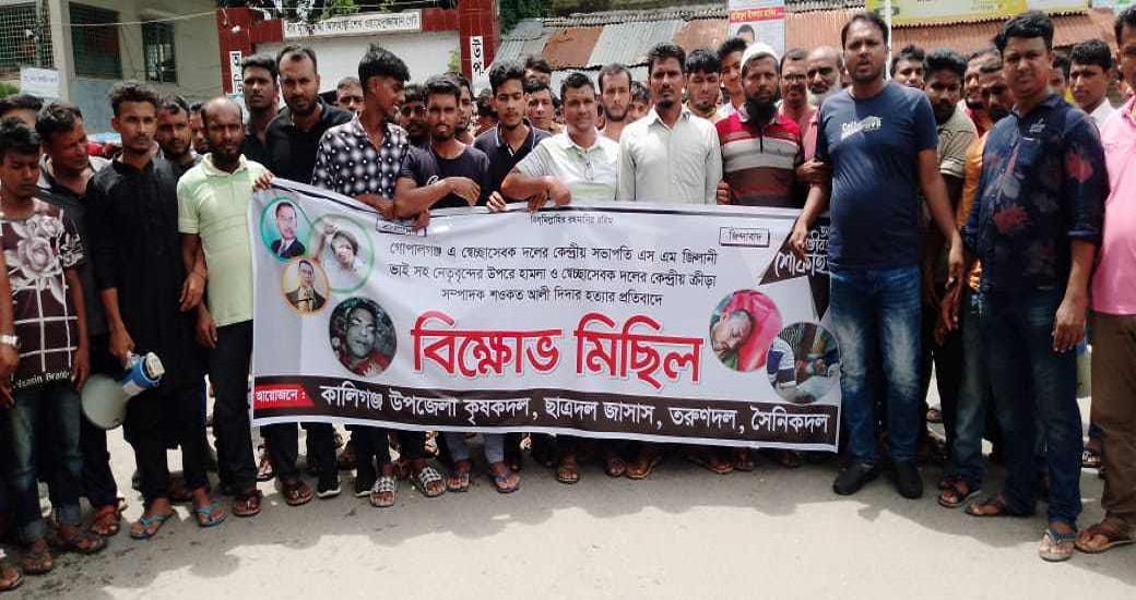 জাতীয়তাবাদী স্বেচ্ছাসেবক দলের কেন্দ্রীয় সভাপতি এস এম জিলানী সহ অর্ধশত নেতাকর্মীর উপর হামলা ও কেন্দ্রীয় স্বেচ্ছাসেবক দলের ক্রীড়া সম্পাদক শওকত আলী দিদা'র হত্যার প্রতিবাদে কালিগজ্ঞ উপজেলা কৃষকদলের আহ্বায়ক মোঃ রোকনুজ্জামান এর নেতৃত্বে বিক্ষোভ মিছিল ও সমাবেশ অনুষ্ঠিত হয়েছে।