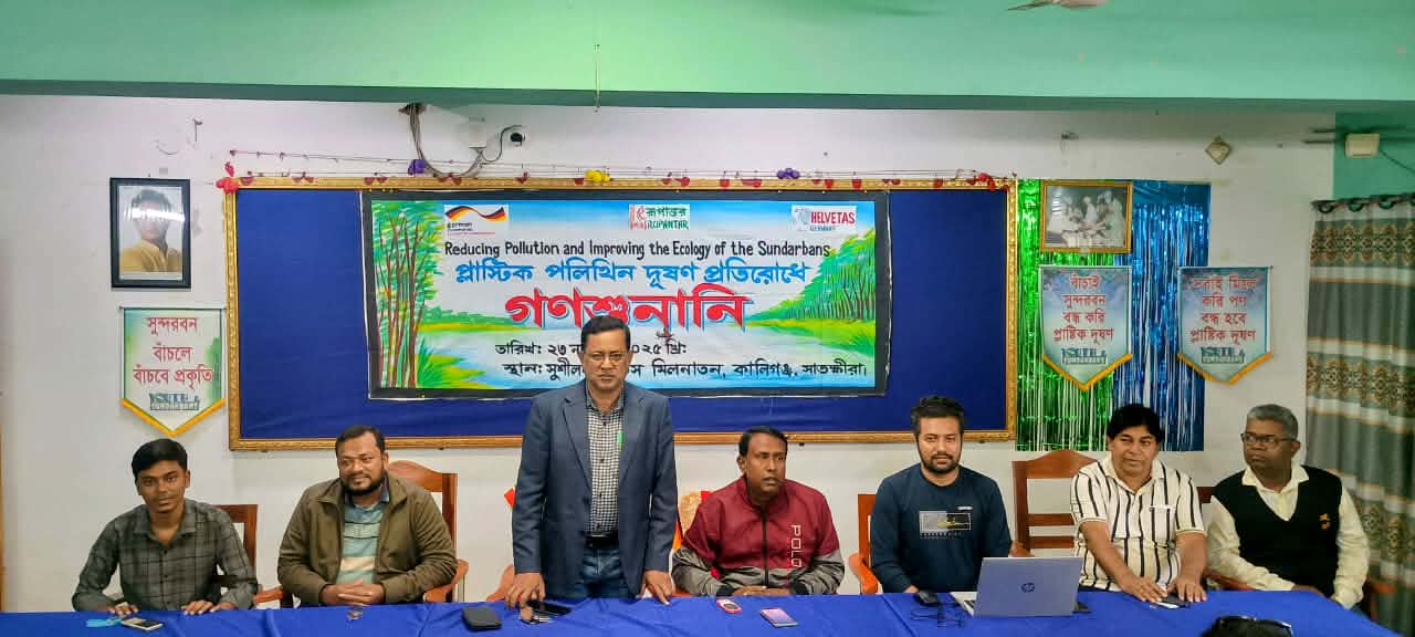 সাতক্ষীরার কালিগঞ্জে পলিথিন ও প্লাস্টিক দূষণ প্রতিরোধে গণশুনানি অনুষ্ঠিত হয়েছে। রবিবার (২৩ নভেম্বর) সকালে উপজেলার সুশীলন অফিসের মিলনায়তনে গণশুনানির আয়োজন করে বেসরকারি উন্নয়ন সংস্থা রূপান্তর। রূপান্তরের বাস্তবায়নে এবং সুইজারল্যান্ড সরকারের সহায়তায় পরিচালিত সুন্দরবন ম্যানগ্রোভ বন ও সংলগ্ন অঞ্চলে পলিথিন ও প্লাস্টিক দূষণ কমানো এবং বাস্তুসংস্থান উন্নয়ন” প্রকল্পের আওতায় এ কার্যক্রম পরিচালিত হচ্ছে।