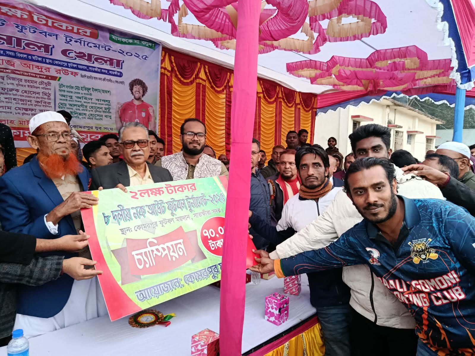 সাতক্ষীরা সদরের ঐতিহ্যবাহী কোমরপুর ফুটবল মাঠে দুই লক্ষ টাকার ৮ দলীয় নকআউট ফুটবল টুর্নামেন্টের মেগা ফাইনাল খেলা এবং পুরস্কার বিতরণ করা হয়েছে।
