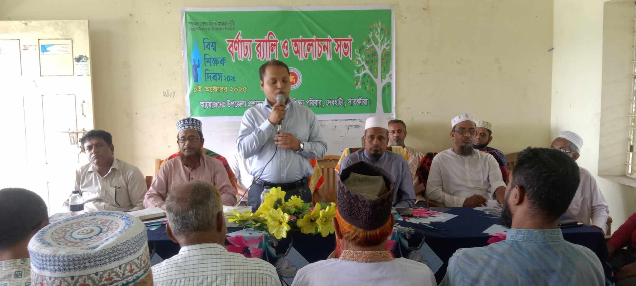 উপজেলা প্রশাসন ও উপজেলা মাধ্যমিক শিক্ষা পরিবারের আয়োজনে রবিবার সকাল ১১টায় উপজেলার সকল কলেজ, স্কুল ও মাদ্রাসার শিক্ষকদের নিয়ে বিশ্ব শিক্ষক দিবসের বর্ণাঢ্য র্যালি পরবর্তী আলোচনা সভায় প্রধান অতিথির বক্তব্যে উপরোক্ত কথাগুলো বলেন দেবহাটা উপজেলা নির্বাহী অফিসার মিলন সাহা।