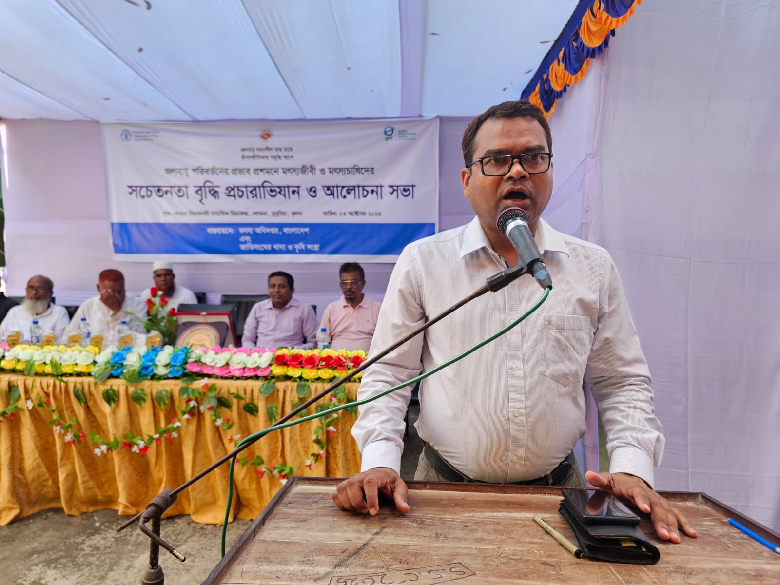 জলবায়ু পরিবর্তনের প্রভাব প্রশমনে মৎস্যজীবী ও মৎস্যচাষিদের সচেতনতা বৃদ্ধি প্রচারাভিযানে বৃহস্পতিবার ২৩ অক্টোবর ২০২৫সকাল ৮টায় ডুমুরিয়ার শোভনা বিরাজময়ী মাধ্যমিক বিদ্যালয়, ময়দানে মৎস্য অধিদপ্তর, বাংলাদেশ এবং