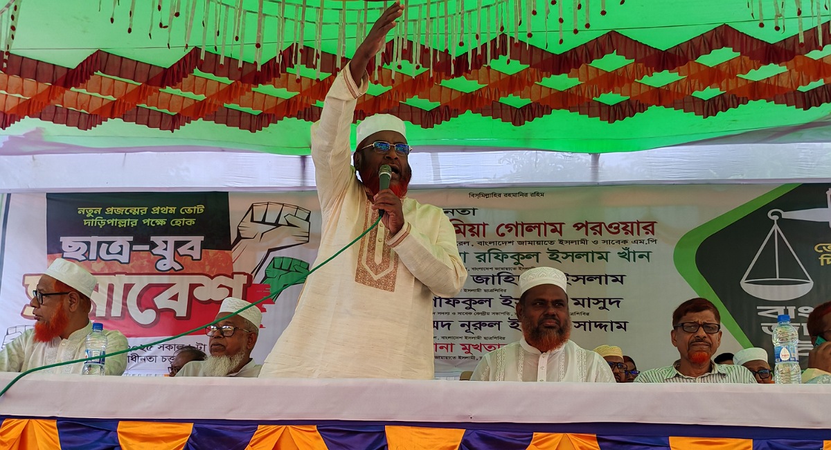 আপনারা বিগত ৫৪ বছরে বিভিন্ন দলের শাসন দেখেছেন। সেখানে জনগণের কাঙ্ক্ষিত কল্যাণ সাধিত হয়নি। বিগত সরকারগুলো হত্যা, লুটপাট, দুর্নীতি, অন্যায়, অত্যাচার, অবিচারের মাধ্যমে দেশকে একটি অস্থিতিশীল রাষ্ট্রে পরিণত করেছিল। দেশের মানুষ এখন বলতে শুরু করেছে, সব দলের শাসন দেখা হয়েছে, শুধু বাকি রয়েছে ইসলামি শাসন দেখার: অধ্যাপক মিয়া গোলাম পরওয়ার