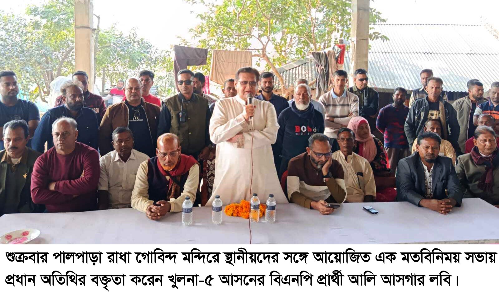 শুক্রবার (২৩ জানুয়ারি) খর্নিয়া বাজার জামে মসজিদে জুমার নামাজ আদায় শেষে পালপাড়া রাধা গোবিন্দ মন্দিরে স্থানীয়দের সঙ্গে আয়োজিত এক মতবিনিময় সভায় প্রধান অতিথির বক্তৃতা খুলনা-৫ আসনের বিএনপি প্রার্থী আলি আসগার লবি একথা বলেন।