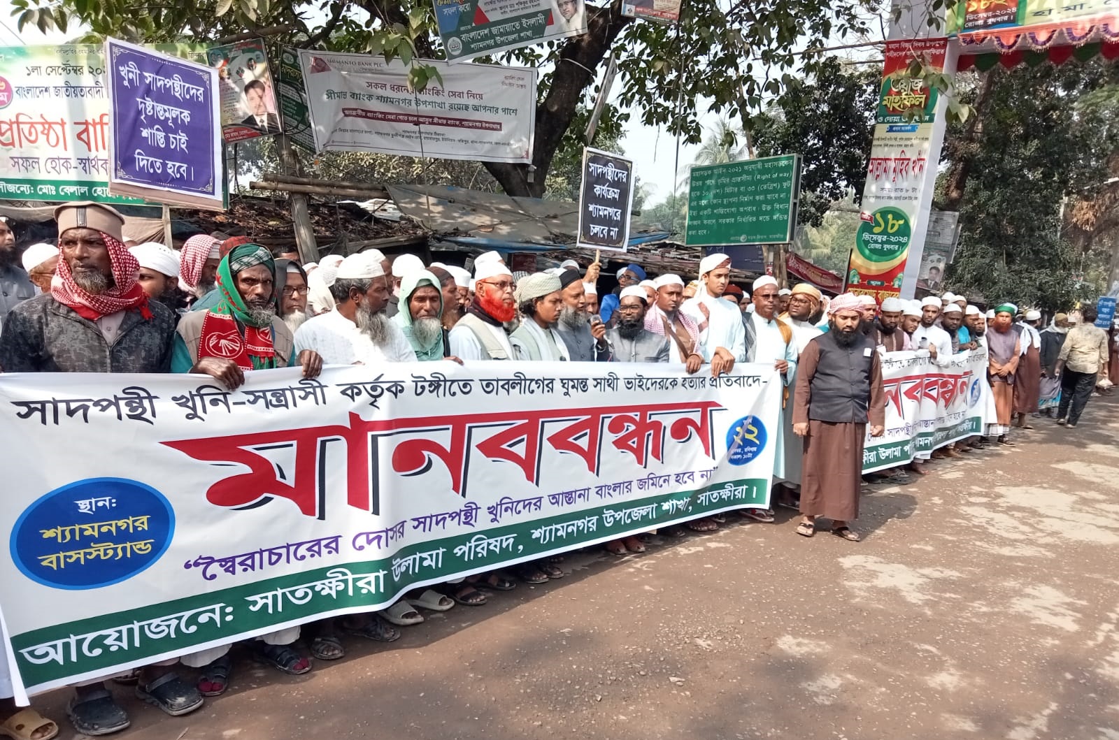 তাবলীগের সাথীদের হত্যার প্রতিবাদে শ্যামনগরে মানববন্ধন ও স্মারকলিপি প্রদান