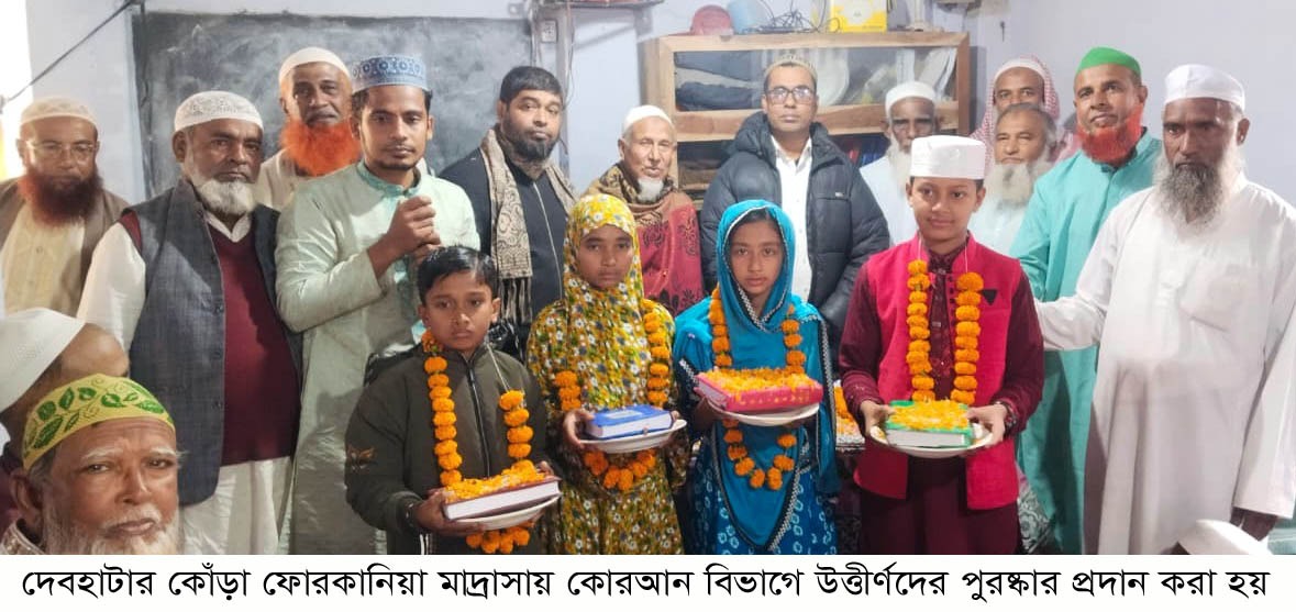 দেবহাটার কোঁড়া পাড়ের পুকুরধার ফোরকানিয়া মাদ্রাসায় শিক্ষার্থীদের নূরানী কায়দা বিভাগ থেকে কোরআন বিভাগে উত্তীর্ণদের পুরষ্কার বিতরণ ও মাদ্রাসার প্রতিষ্ঠা বার্ষিকী পালিত হয়েছে।
