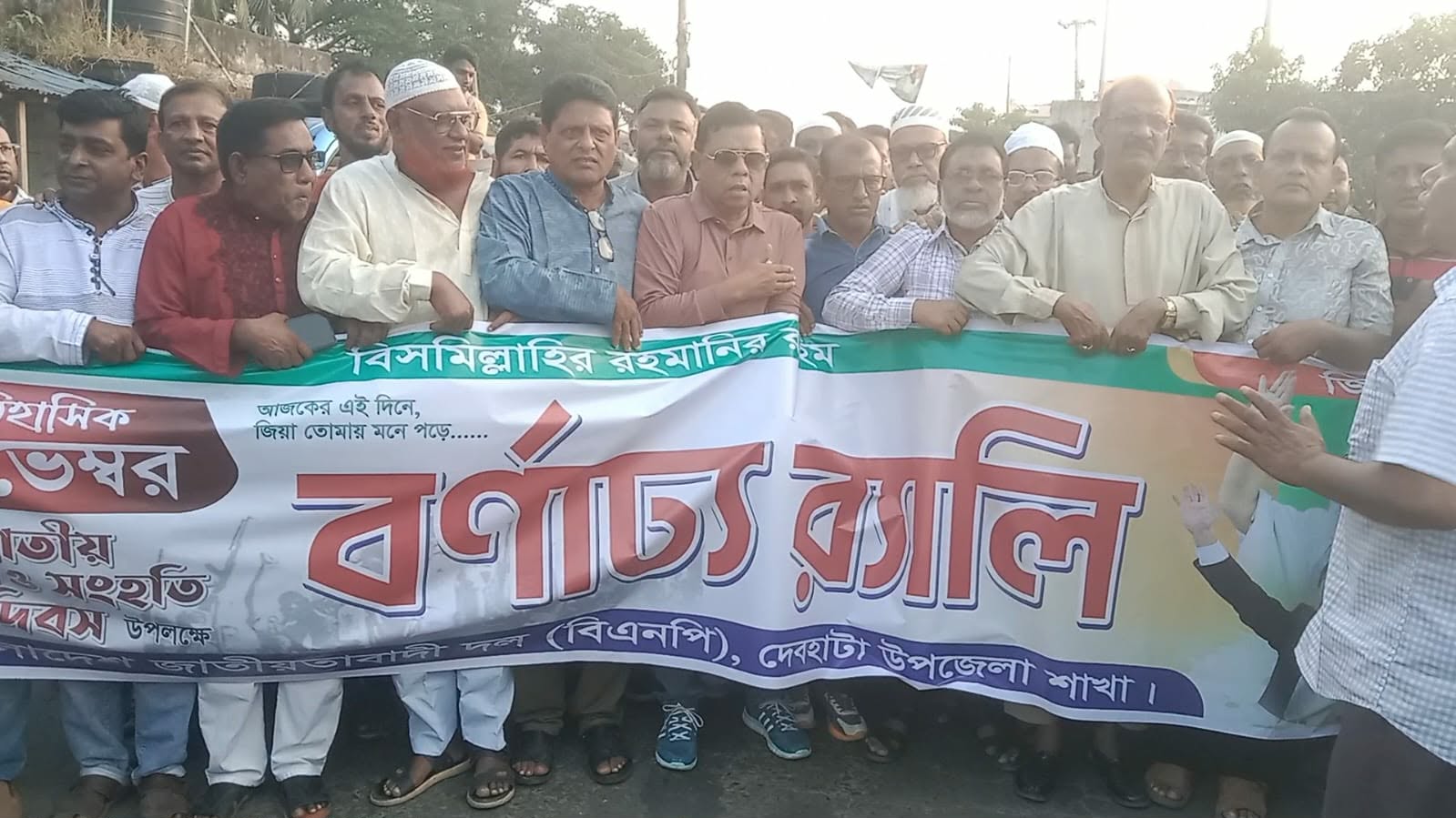 দেবহাটায় উপজেলা বিএনপির আয়োজনে জাতীয় বিপ্লব ও সংহতি দিবসে র্যালি ও সমাবেশ অনুষ্ঠিত হয়েছে। র্যালিটি সখিপুর মোড় থেকে শুরু হয়ে উপজেলা স্বাস্থ্য কমপ্লেক্সের সামনে গিয়ে শেষ হয়।