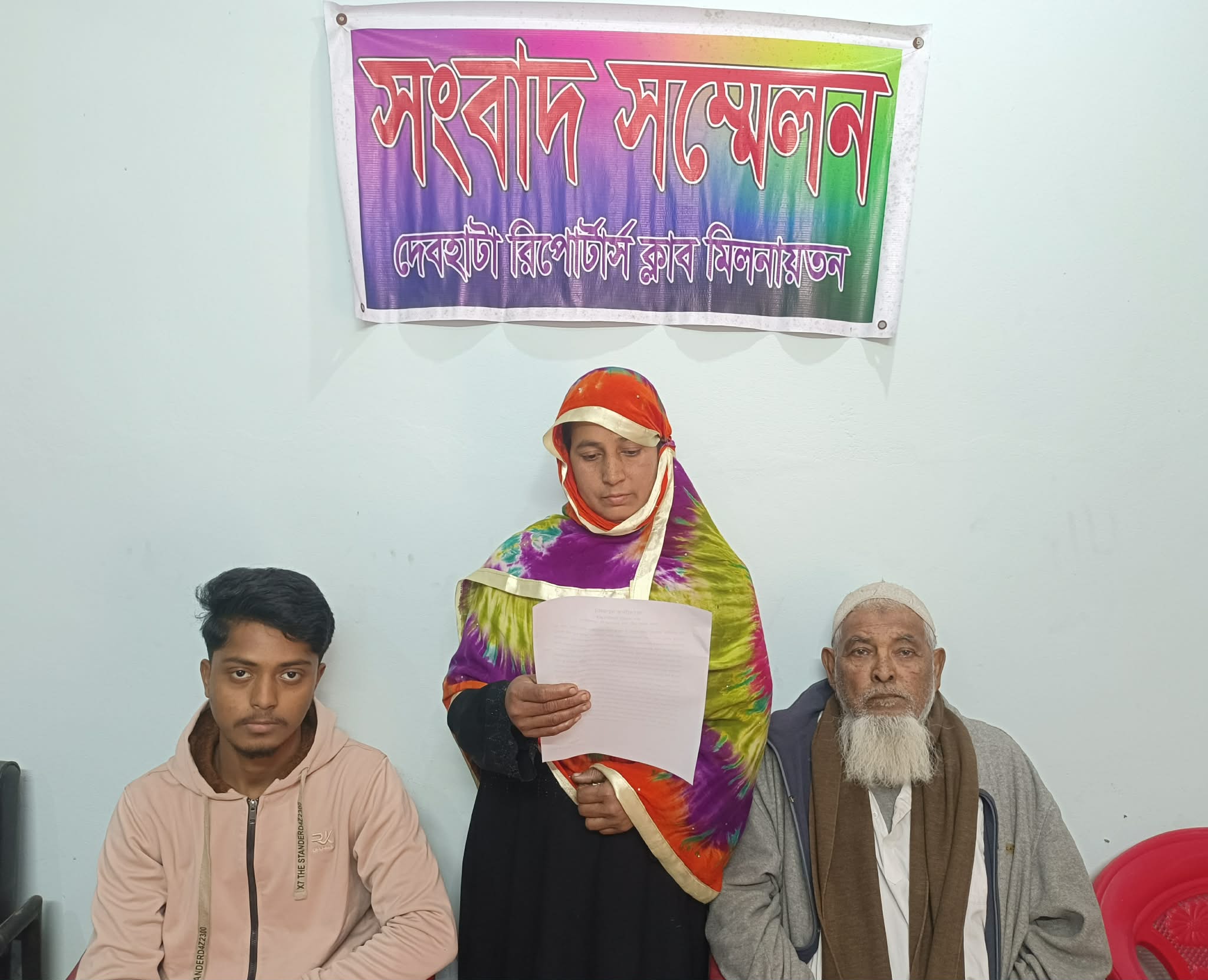 বৃহস্পতিবার (৮ জানুয়ারি) সকালে দেবহাটা রিপোর্টার্স ক্লাব মিলনায়তনে আয়োজিত সাংবাদিক সম্মেলনে লিখিত বক্তব্য পাঠ করেন দেবহাটা উপজেলার নাংলা গ্রামের মৃত মিজানুর রহমানের স্ত্রী শরিফা খাতুন।