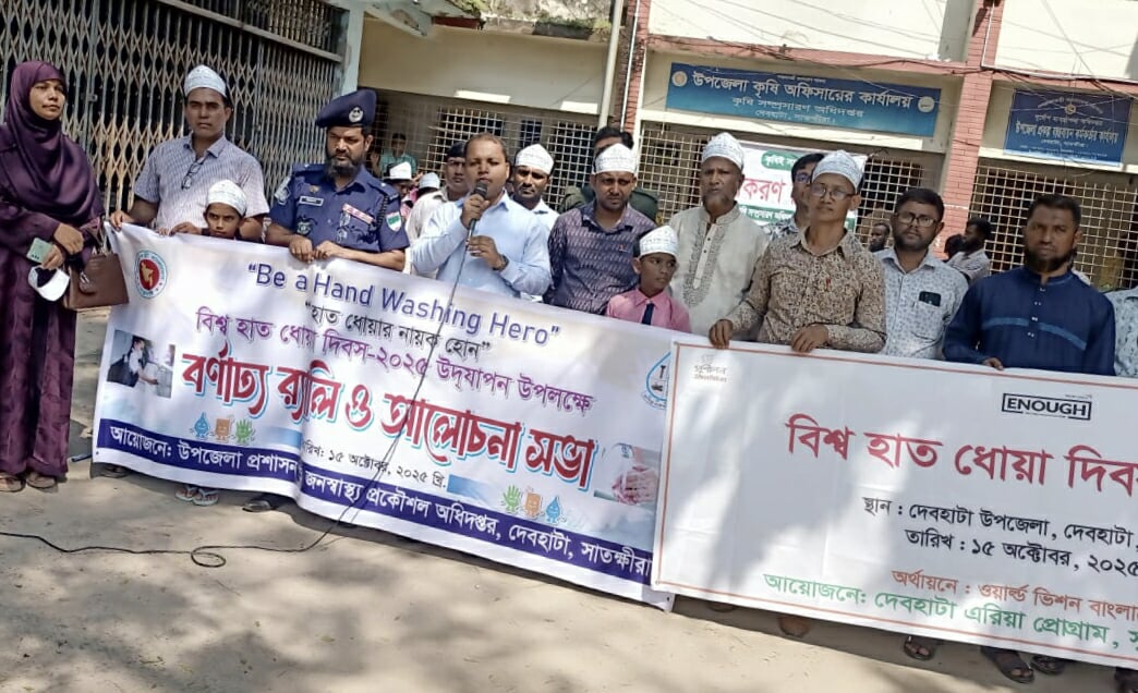 দেবহাটায় বিশ্ব হাত ধোয়া দিবস উপলক্ষ্যে উপজেলা প্রশাসন ও জনস্বাস্থ্য প্রকৌশল অধিদপ্তরের আয়োজনে বুধবার সকাল সাড়ে ১০টায় বর্নাঢ্য র্যালি ও আলোচনা সভা অনুষ্ঠিত হয়েছে।