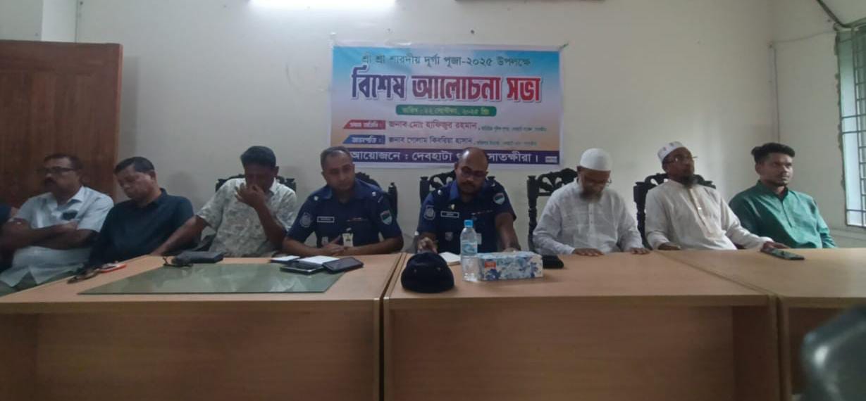 দেবহাটা থানার আয়োজনে সনাতন ধর্মাবলম্বীদের সবচেয়ে বড় উৎসব শারদীয় দূর্গাপূজা উদযাপনে বিশেষ আলোচনা সভা অনুষ্ঠিত হয়েছে। সোমবার ২২ সেপ্টেম্বর সকাল ১১টায় দেবহাটা থানার মিলনায়তনে অনুষ্ঠিত উক্ত আলোচনা সভায় সভাপতিত্ব করেন দেবহাটা থানার অফিসার ইনচার্জ গোলাম কিবরিয়া হাসান। প্রধান অতিথি হিসেবে উপস্থিত ছিলেন সহকারী পুলিশ সুপার দেবহাটা সার্কেল হাফিজুর রহমান।