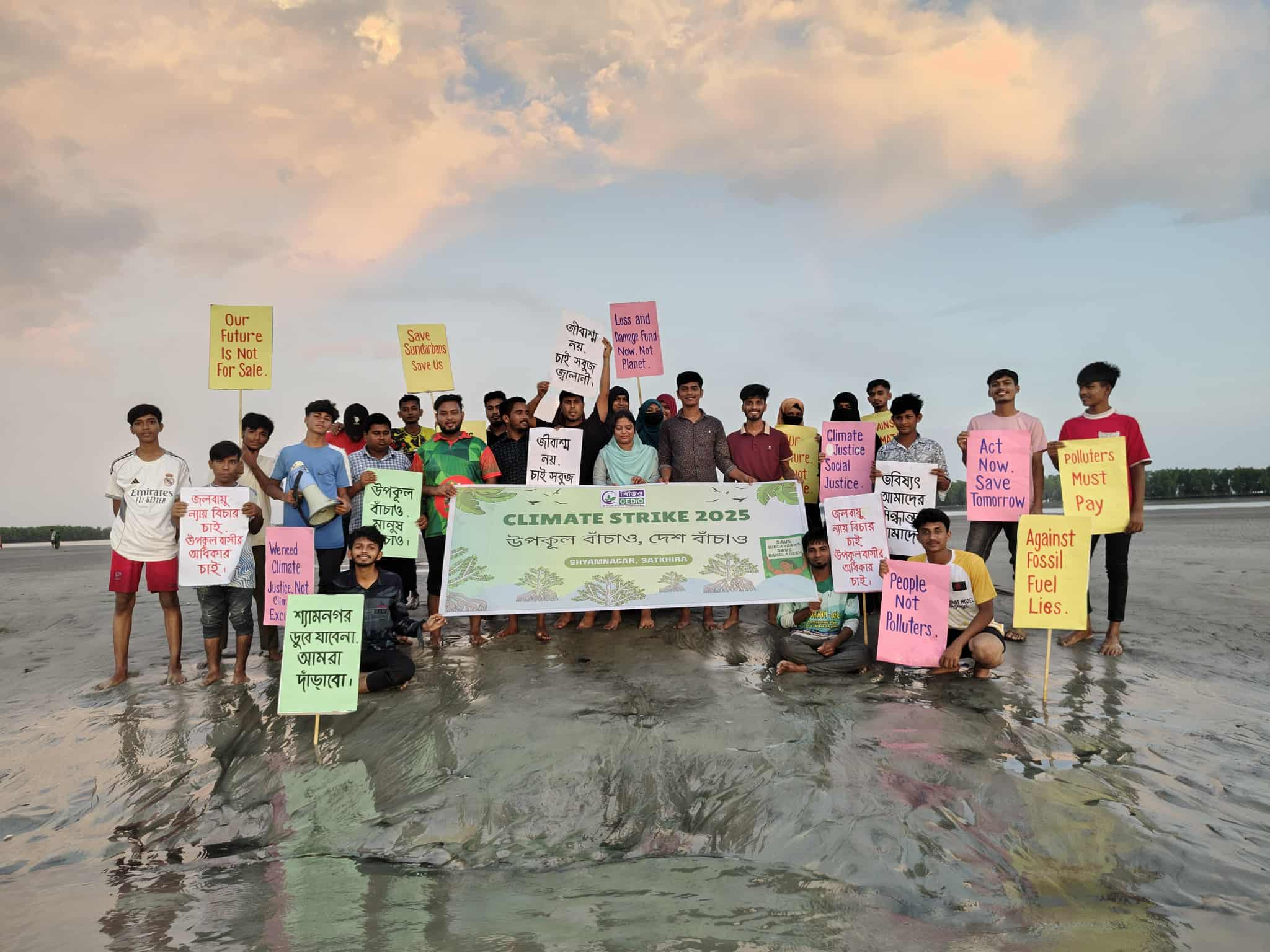 কপ-৩০ সামনে রেখে সাতক্ষীরার শ্যামনগরে স্বেচ্ছাসেবী যুব সংগঠন সিডিও ইয়ুথ টিমের আয়োজনে যুব সমাজের কণ্ঠস্বর “উপকূল বাঁচাও, দেশ বাঁচাও” স্লোগ্রানে জলবায়ু ধর্মঘাট অনুষ্ঠিত হয়েছে।ধর্মঘাট কালীন সময়ে যুবরা প্লাকার্ড প্রদর্শনীতে বলেন, জলবায়ু পরিবর্তনের ক্ষতি, অন্যায় ও অনিশ্চয়তার বিরুদ্ধে আমরা দাঁড়িয়েছি। আমাদের ভবিষ্যৎ বিক্রি নয়, এখনই জলবায়ু ন্যায়বিচার চাই।