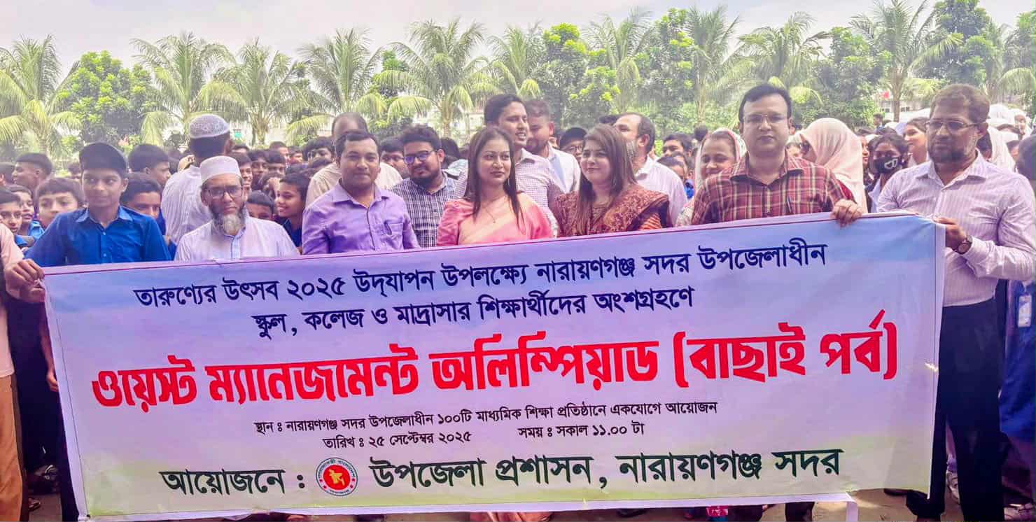 নারায়ণগঞ্জ সদর উপজেলার ১০০টি শিক্ষা প্রতিষ্ঠানে একযোগে অনুষ্ঠিত হলো “ওয়েস্ট ম্যানেজমেন্ট অলিম্পিয়াড-২০২৫।