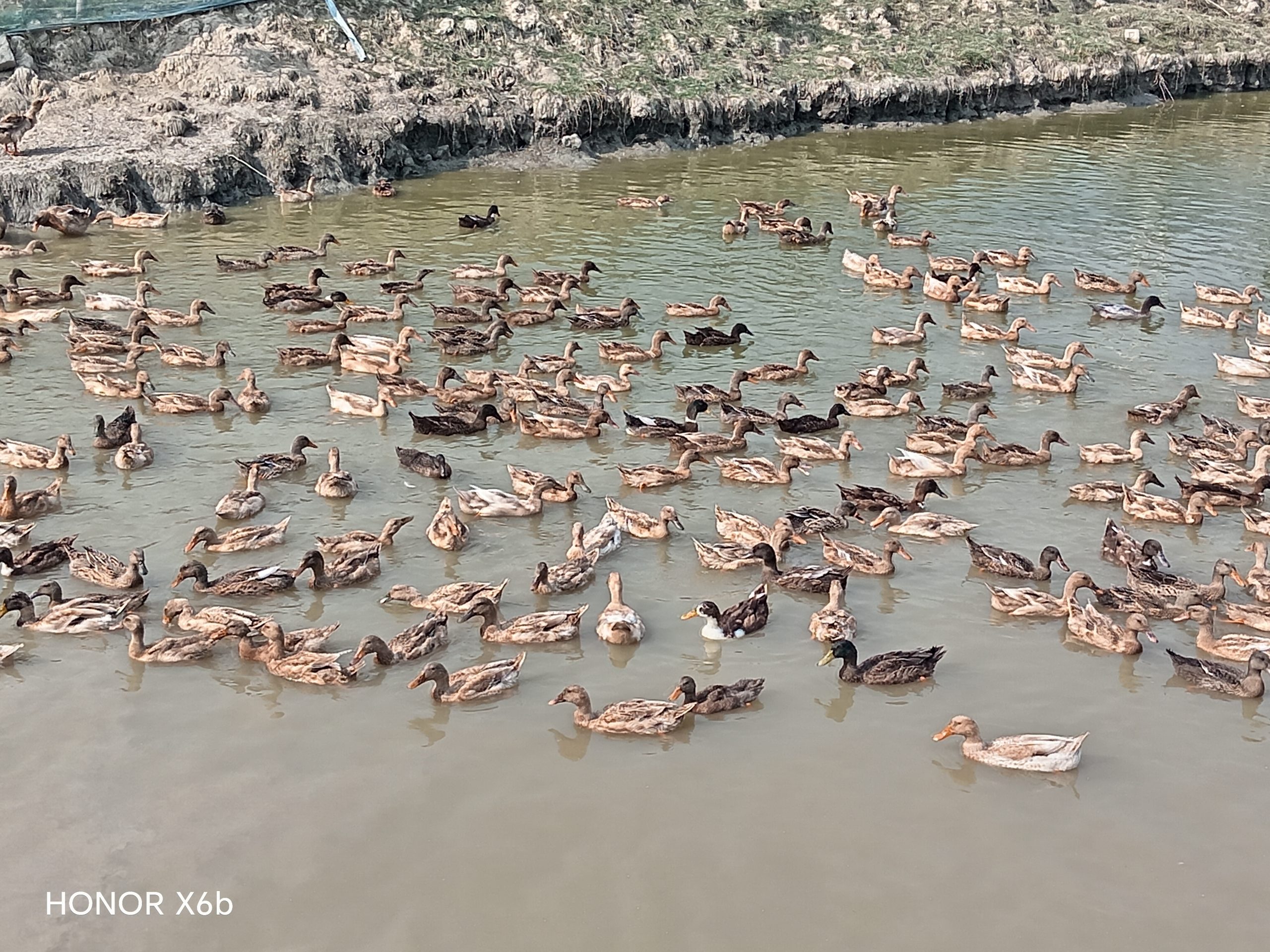 মাছ আর হাঁস—দুটোই একসাথে বড় হচ্ছে নিজের নিজের নিয়মে। মাছের খাবারের পাশাপাশি হাঁসের চলাচল আর বিষ্ঠা ঘেরের পানিতে প্রাকৃতিক খাদ্য তৈরি করে। এতে মাছ দ্রুত বাড়ে, খাদ্য ব্যয় কমে যায়। হাঁসও ঘেরের ছোট ছোট ঝিনুক–শামুক খেয়েই বড় হচ্ছে, ফলে আলাদা খাবারের চাপ খুবই কম।