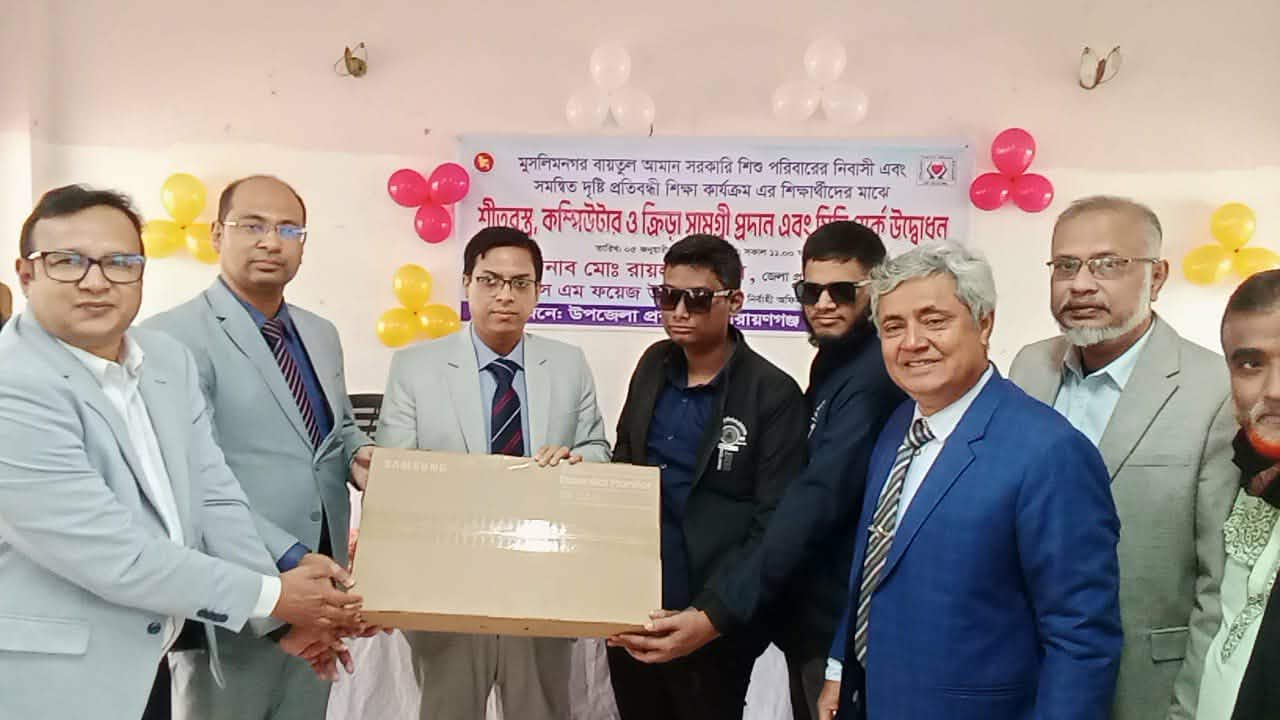 ফতুল্লায় মুসলিম নগর বাইতুল আমান সরকারি শিশু পরিবারে বসবাসরত শিশু ও দৃষ্টি প্রতিবন্ধী শিক্ষা কার্যক্রমের শিক্ষার্থীদের শীতবস্ত্র, কম্পিউটার ও ক্রীড়া সামগ্রী তুলে দিয়েছেন জেলা প্রশাসক মোহাম্মদ রায়হান কবির।