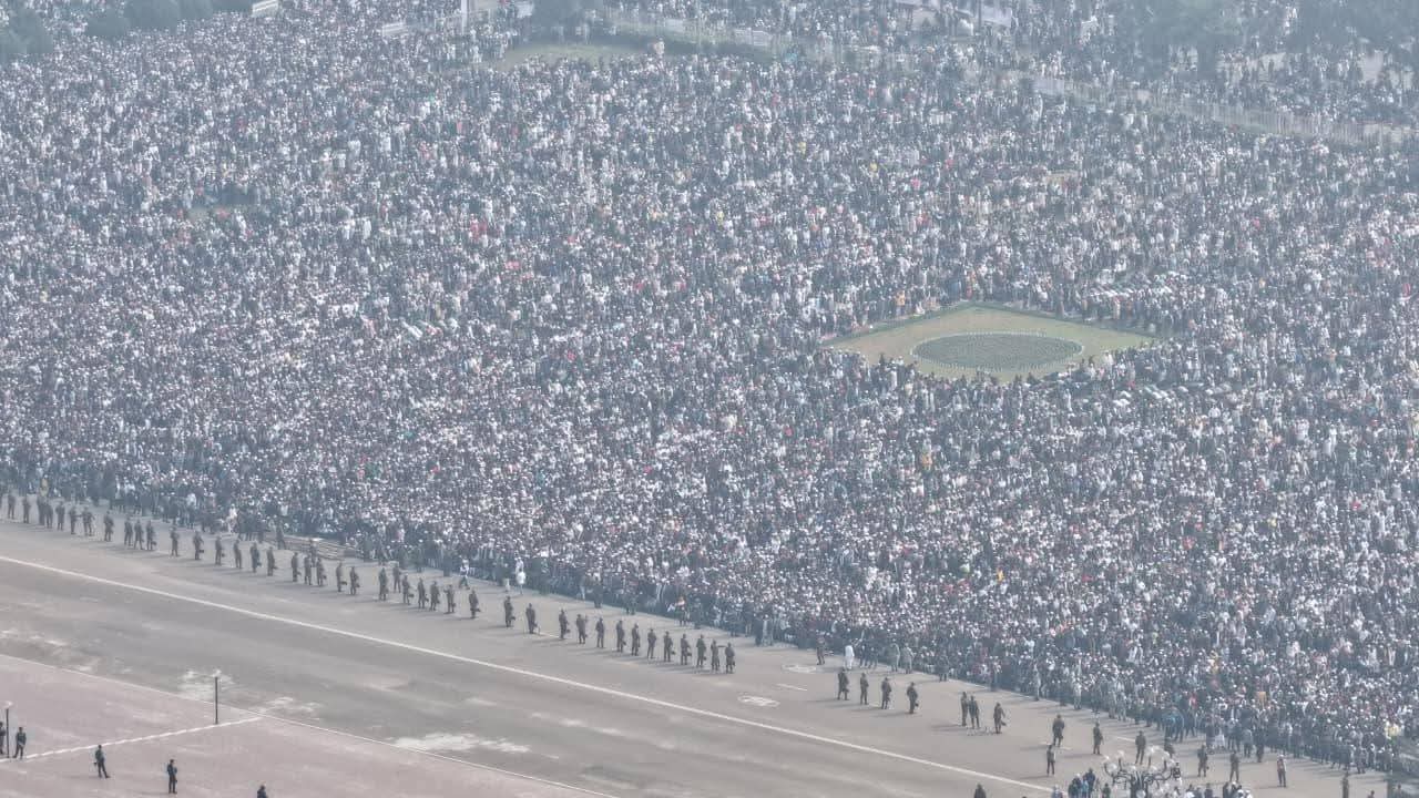 এদিন সকাল ১১টা ৪৮ মিনিটের দিকে কঠোর নিরাপত্তায় জাতীয় সংসদ ভবনের দক্ষিণ প্লাজায় পৌঁছে বেগম খালেদা জিয়ার মরদেহ। রাষ্ট্রীয় প্রোটকলে লাল-সবুজ রঙের জাতীয় পতাকায় মোড়ানো ফ্রিজার ভ্যানে করে তার মরদেহ আনা হয়।