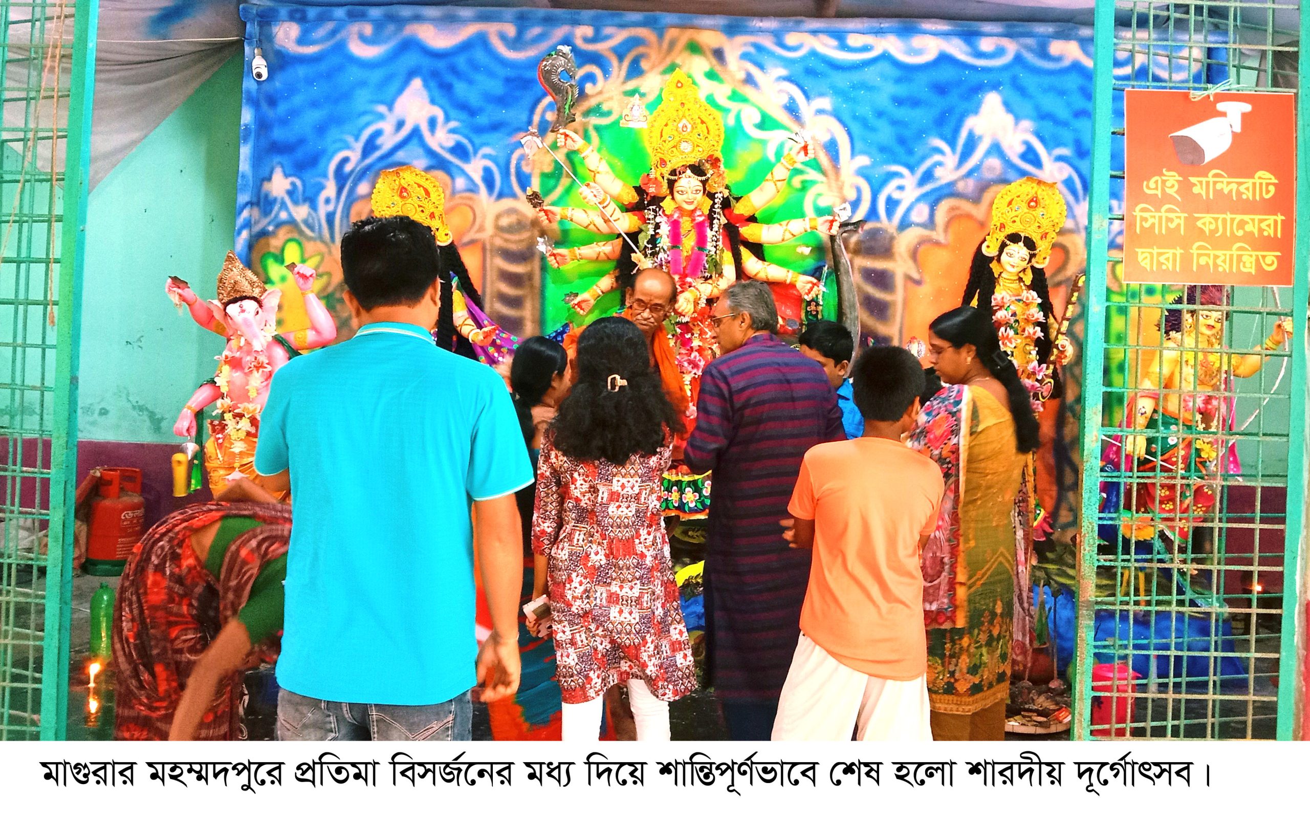 সনাতন ধর্মাবলম্বীদের সবচেয়ে বড় ধর্মীয় উৎসব শারদীয় দুর্গাপূজা। বৃহস্পতিবার বিজয়া দশমী, প্রতিমা বিসর্জনের মধ্য দিয়ে শান্তিপূর্ণভাবে শেষ হচ্ছে পাঁচদিন ব্যাপী শারদীয় দূর্গোৎসব। পূজার নানা আচার-অনুষ্ঠান, ভক্তদের আনন্দ-উচ্ছ্বাস, ঢাকঢোলের বেজে ওঠা আর আলো ঝলমলে সাজসজ্জার সমাপ্তি ঘটতে চলছে আজ। ১৭ আশ্বিন (২অক্টোবর) মাগুরা জেলার প্রতিটি উপজেলায় পূজা মন্দির-মণ্ডপে এখন বিদায়ের আবেগ, দেবী দুর্গাকে কৈলাশে স্বামীর গৃহে ফিরে যাওয়ার প্রার্থনায় ভক্তরা মগ্ন।