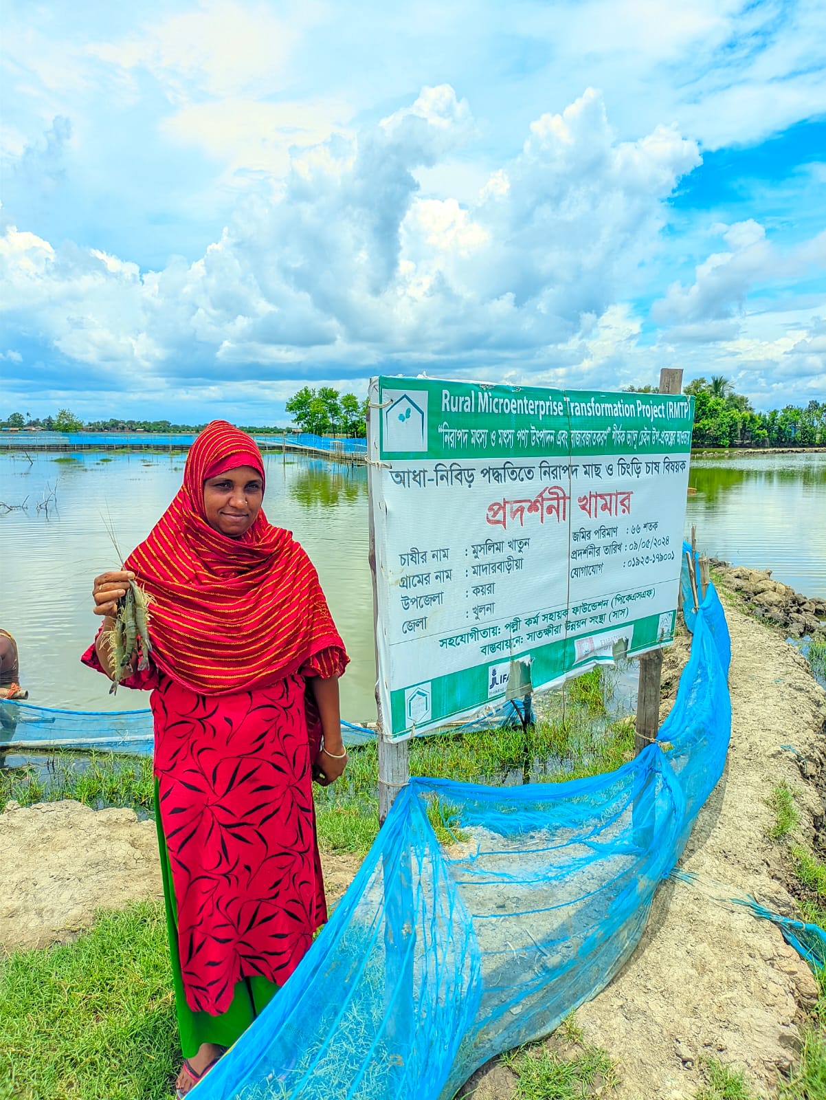 খুলনার কয়রা উপজেলার মহারাজপুর ইউনিয়নের মাদারবাড়িয়া গ্রামের বাসিন্দা মুসলিমা খাতুন (৩৫)। এক সময় সংসারের আর্থিক সংকটে তাকে অন্যের বাড়িতে কাজ করতে হতো। তার স্বামী ছিলেন একজন প্রান্তিক জেলে ও সনাতনী পদ্ধতির ক্ষুদ্র মাছচাষি। নিয়মিত আয় না থাকায় পরিবার চালানো ছিল খুবই কঠিন। স্বামীর অনুপস্থিতিতে অনেক সময় মুসলিমাকেই ঘের দেখাশোনা করতে হতো। কিন্তু সঠিক প্রযুক্তি ও পদ্ধতি না জানার কারণে উৎপাদন ও লাভ উভয়ই ছিল খুবই সামান্য।