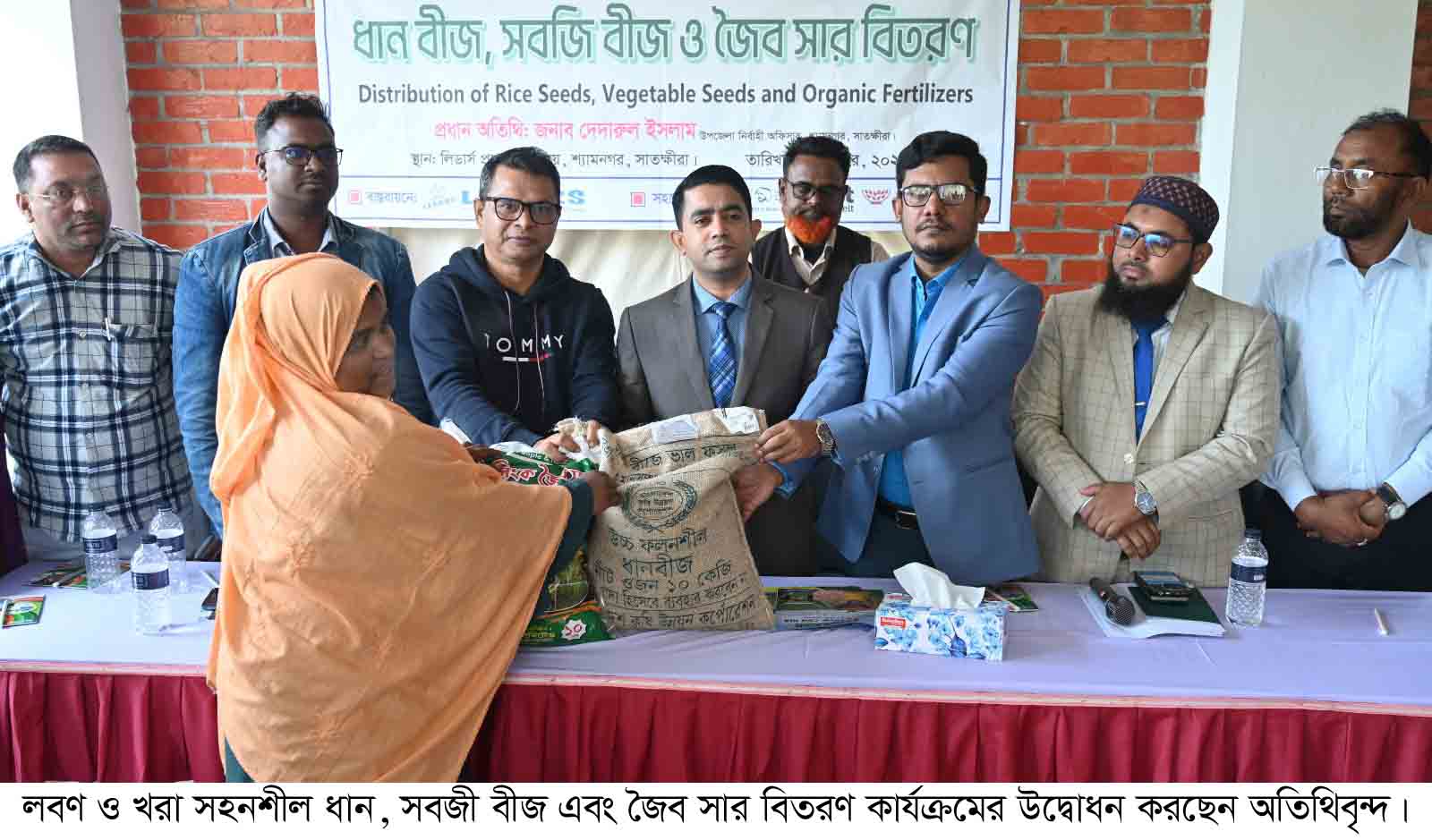 সোমবার (১ ডিসেম্বর ২০২৫) সকাল ১০টায় শ্যামনগরস্থ সংস্থার প্রধান কার্যালয়ে শ্যামনগর, কালিগঞ্জ, মোংলা, বটিয়াঘাটা, পাইকগাছা, কয়রা ও দাকোপ উপজেলার ৩৫টি ইউনিয়নের মোট ৯,২০০ কৃষকের মাঝে ১৫,৬৫০ কেজি লবণ ও খরা সহনশীল ধান বীজ, ৩,০০০ কেজি সবজি বীজ এবং ৩০,০০০ কেজি জৈবসার বিতরণের উদ্বোধন করা হয়।