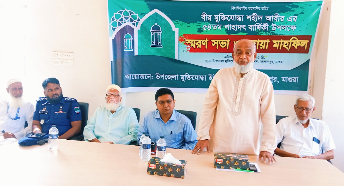 বৃহস্পতিবার বেলা সাড়ে ১১ ঘটিকায় মহম্মদপুর উপজেলা মুক্তিযোদ্ধা ইউনিট কমান্ড কাউন্সিলের আয়োজনে শহীদ বীর মুক্তিযোদ্ধা আবীর হোসেন'র শাহাদাৎ বার্ষিকী উপলক্ষে আলোচনা সভায় সভাপতির বক্তব্যে এসব দাবী জানান উপজেলা মুক্তিযোদ্ধা ইউনিট কমান্ড কাউন্সিলের আহ্বায়ক বীর মুক্তিযোদ্ধা অধ্যক্ষ (অব.) মোহাম্মদ মতিউর রহমান।