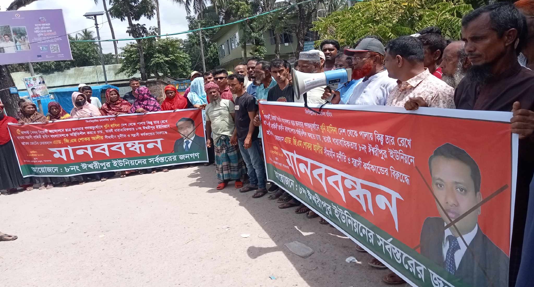 শ্যামনগর উপজেলার ৮নং ঈশ্বরীপুর ইউনিয়নের ইউপি চেয়ারম্যান এ্যাড: জি এম শুকুর আলীর বিরুদ্ধে দুর্নীতি স্বজনপ্রীতি আত্মীয় করনের বিরুদ্ধে মানববন্ধন ও উপজেলা নির্বাহী অফিসার বরাবর স্মারকলিপি প্রদান করেছে।