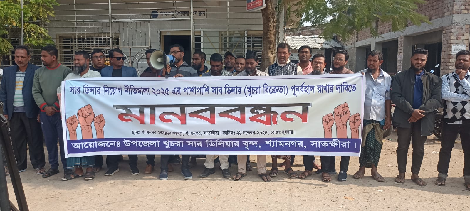 নতুন সার নীতিমালা ২০২৫ বাস্তবায়নের ফলে খুচরা সার ডিলারদের লাইসেন্স বাতিলের আশঙ্কায় সাতক্ষীরা জেলার শ্যামনগর উপজেলায় কর্মরত ডিলারদের মধ্যে চরম হতাশা ও উদ্বেগ সৃষ্টি হয়েছে। বুধবার (২৬ নভেম্বর) খুচরা সার ডিলার লাইসেন্সধারীরা শ্যামনগর উপজেলা প্রেসক্লাবের সামনে আয়োজিত মানববন্ধনে এ আশঙ্কা প্রকাশ করেন।