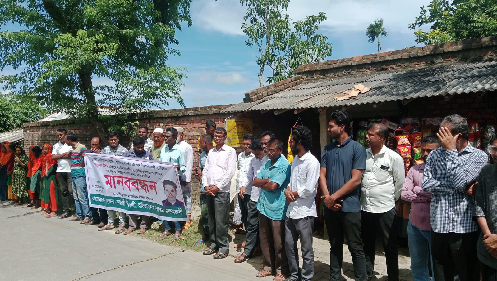 ৮ সেপ্টেম্বর রবিবার বেলা ১১ টায় চিংড়িখালি মাধ্যমিক বিদ্যানিকেতনের সামনে চিংড়াখালী মাধ্যমিক বিদ্যানিকেতন এর প্রধান শিক্ষক স্বৈরাচারী, দুর্নীতিবাজ জয়দেব বিশ্বাস প্রতিষ্ঠানে সীমাহীন অর্থ বাণিজ্য ও দুর্নীতির প্রতিবাদে পদত্যাগসহ স্বচ্ছ তদন্ত ও দৃষ্টান্তমূলক আইনী ব্যবস্থা গ্রহনের দাবীতে মানববন্ধন করে। শিক্ষক-কর্মচারী, শিক্ষার্থী, অভিভাবক ও সচেতন এলাকাবাসী আয়জনে মানববন্ধনে বক্তব্য রাখেন চিংড়াখালী মাধ্যমিক বিদ্যানিকেতনের ইসলাম শিক্ষ্যার শিক্ষক রফিকুল ইসলাম, শিক্ষক গোবিন্দ কুমার মন্ডল, ভারপ্রাপ্ত প্রধান শিক্ষক সুধন্য কুমার মন্ডল, চতুর্থ শ্রেণীর কর্মচারী শুব্রত কুমার মন্ডল,স্থানীয় অভিভাবক রফিকুল ইসলাম প্রমুখ।