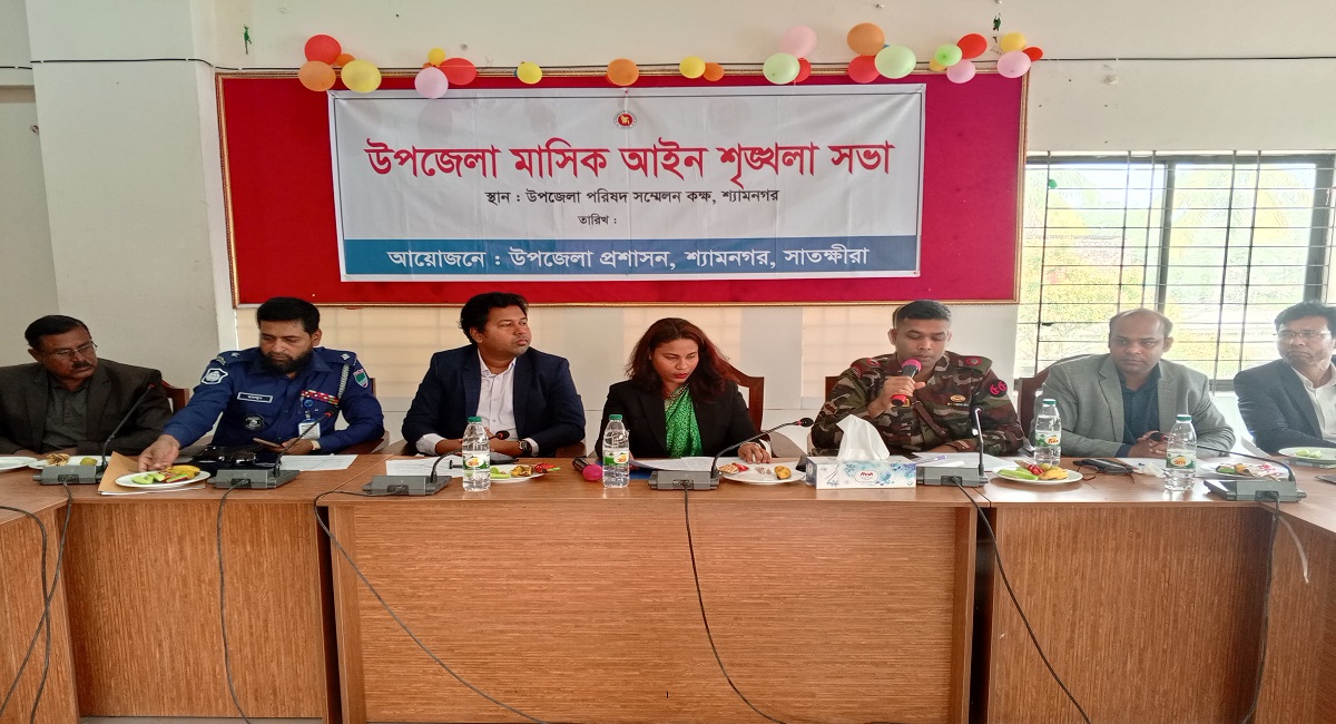 সাতক্ষীরার শ্যামনগরে মাসিক আইন-শৃঙ্খলা সভা অনুষ্ঠিত হয়েছে। উপজেলা নির্বাহী কর্মকর্তা (ইউএনও) মোছাঃ রনি খাতুনের সভাপতিত্বে বৃহস্পতিবার (৩০শে জানুয়ারী ) সকাল ১১টায় উপজেলা পরিষদের হলরুমে এ সভা অনুষ্ঠিত হয়।সভায় অন্যান্যদের মধ্যে উপস্থিত ছিলেন বাংলাদেশ সেনাবাহিনীর শ্যামনগর ও কালীগঞ্জ এলাকার দায়িত্বে থাকা মেজর ইফতেখার। বিশেষ অতিথি হিসেবে উপস্থিত ছিলেন সহকারী কমিশনার (ভূমি) আব্দুল্লাহ আল রিফাত, শ্যামনগর থানার অফিসার ইনচার্জ (ওসি) মো. হুমায়ুন কবির এবং উপজেলা স্বাস্থ্য ও পরিবার পরিকল্পনা কর্মকর্তা ডা. জিয়াউর রহমান।
