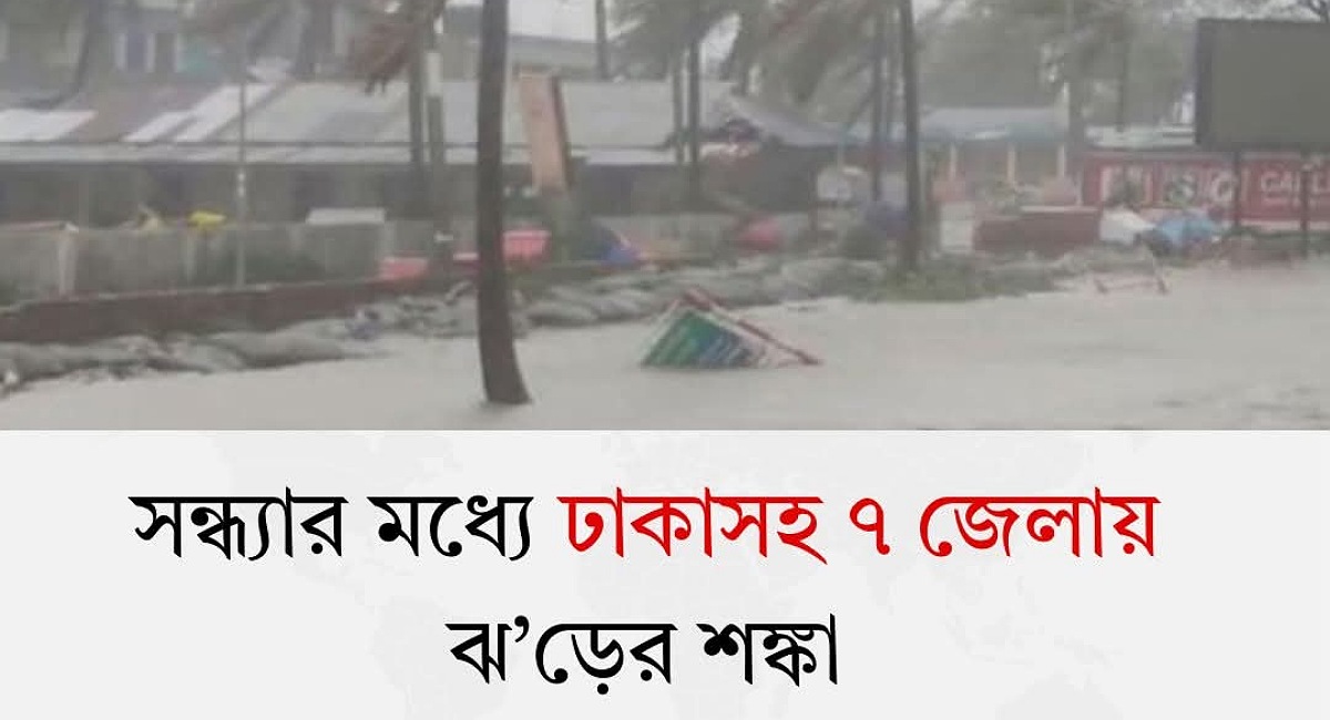 সন্ধ্যার মধ্যে রাজধানীসহ দেশের সাত জেলার ওপর দিয়ে ঝড় বয়ে যাওয়ার আশঙ্কা রয়েছে। সেইসঙ্গে বজ্রসহ বৃষ্টিও হতে পারে।