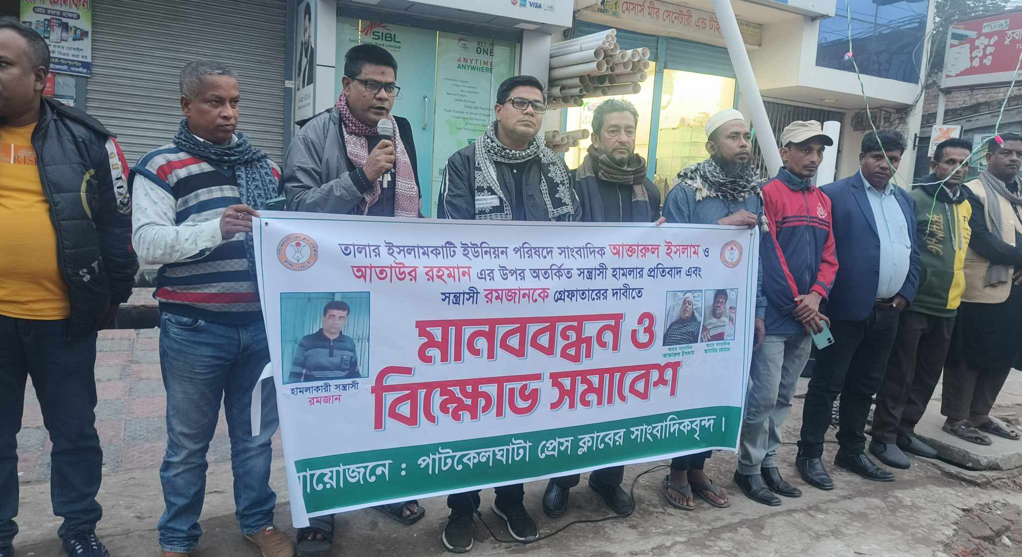 শুক্রবার (২০ ডিসেম্বর ) বিকাল ৫টার সময় পাটকেলঘাটা বাজারে প্রেসক্লাবের সদস্যরা এই কর্মসূচি আয়োজন করেন। মানববন্ধনে উপস্থিত সাংবাদিকরা উল্লেখ করেন, তালা উপজেলার ইসলামকাটি ইউনিয়ন পরিষদে দুই সাংবাদিক, মোঃ আক্তারুজ্জামান এবং আতাউর রহমান সন্ত্রাসী হামলার শিকার হন। এই হামলা সাংবাদিকতার স্বাধীনতার ওপর আঘাত হিসেবে বিবেচিত হয়েছে।