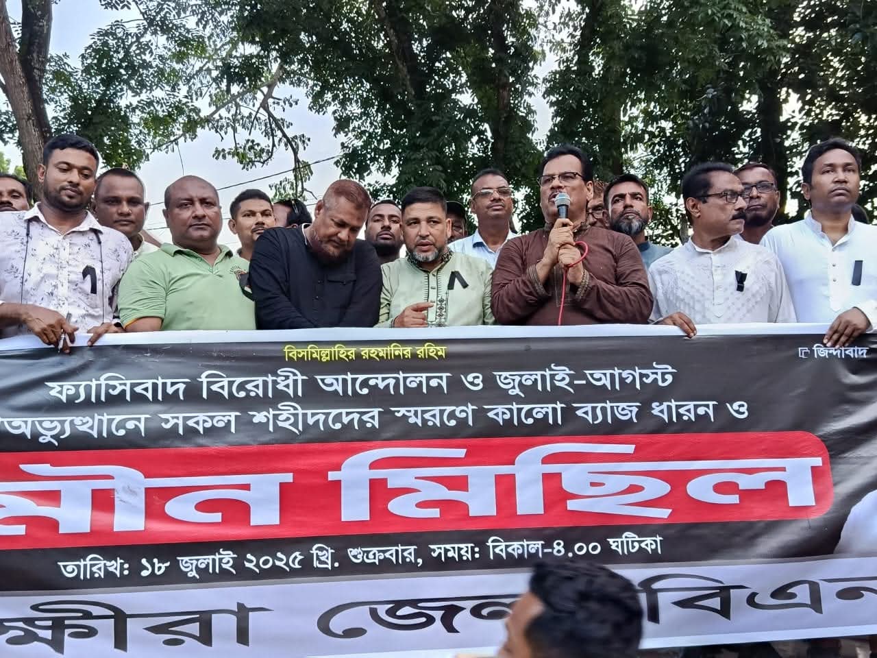 জুলাই আগস্ট গণঅভ্যুত্থানে নিহতদের স্মরণে কালো ব্যাজ ধারন ও মৌন মিছিলের আয়োজন করে সাতক্ষীরা জেলা বিএনপি।