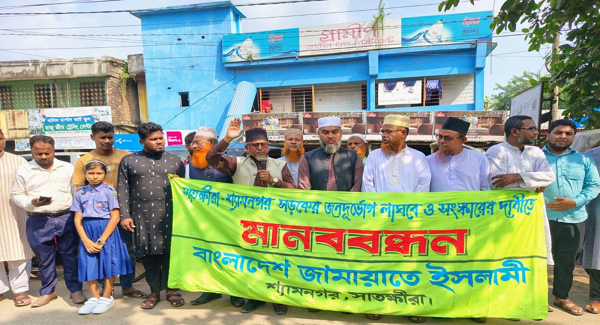 সাতক্ষীরা শ্যামনগর সড়ক সংস্কারের দাবিতে জামায়াতে ইসলামীর মানববন্ধন