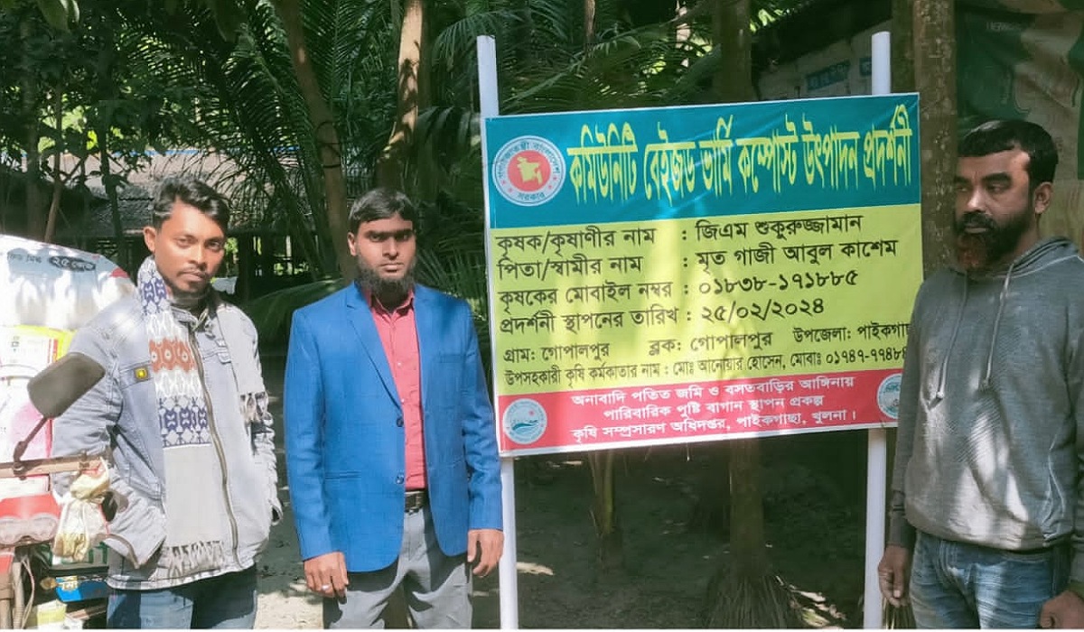 এই উদ্যোগের অংশ হিসেবে ২০২৪ সালে পাইকগাছা উপজেলার গদাইপুর ইউনিয়নের গোপালপুর গ্রামের মৃত গাজী আবুল কাশেমের ছেলে জিএম শুকুরুজ্জামান উপজেলা কৃষি অফিসের সহায়তায় ভার্মি কম্পোস্ট উৎপাদন শুরু করেন। জাতীয় স্বর্ণপদকপ্রাপ্ত ষোলআনা ব্যবসায়ী সমবায় সমিতির সভাপতি শুকুরুজ্জামান নিজের বসতবাড়িতেই ভার্মি কম্পোস্ট উৎপাদন করে এলাকায় ব্যাপক সাড়া ফেলেছেন।