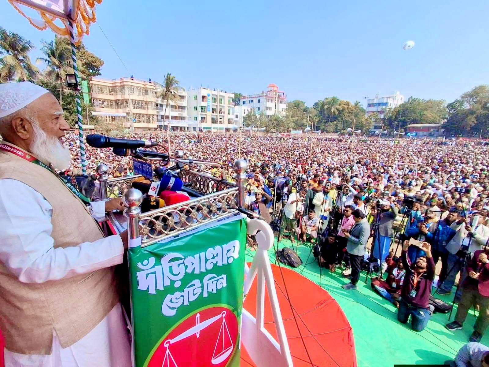 আজ মঙ্গলবার বিকালে খুলনা সাকির্ট হাউস ময়দানে খুলনা জেলা ও মহানগর জামায়াতে ইসলামী আয়োজিত ১১ দলের নির্বাচনী জনসভায় প্রধান অতিথির বক্তৃতায় তিনি একথা বলেন। এর আগে তিনি যশোর ও সাতক্ষীরায় জনসভায় যোগদেন। খুলনার পর তিনি বাগেরহাটে নির্বাচনী জনসভায় যোগদেন।