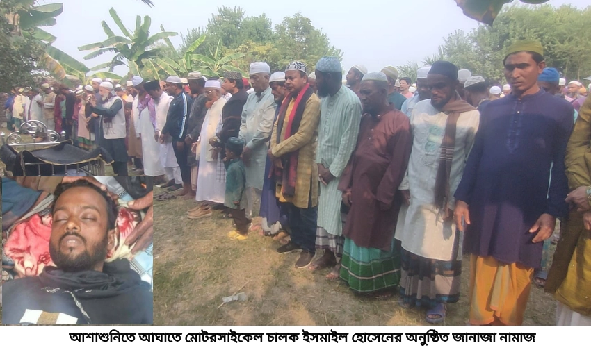 আশাশুনিতে আঘাতে ভাড়ায় চালিত মোটরসাইকেল চালকের জানাজা সম্পন্ন হয়েছে। শুক্রবার জুম্মার নামাজ শেষে জেলেখালী বানারাশিপুর জামে মসজিদ চত্বরে তার জানাজা নামাজ অনুষ্ঠিত হয়। জানাজা নামাজে ইমামতি করেন নায়েবে আমির মাওঃ নুরুল আফসার মুরতাজা।