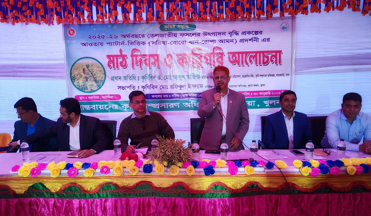 ২০২৫-২৬ অর্থ বছরে তেল জাতীয় ফসলের উৎপাদন বৃদ্ধি প্রকল্পের আওতায় প্যাটার্ন ভিত্তিক সরিষা বোরো ধান রোপন আমন প্রদর্শনী এর মাঠ দিবস ও কারিগরি আলোচনা