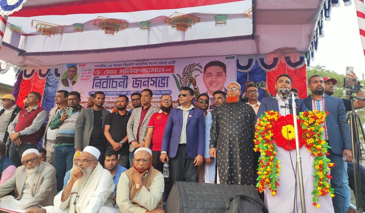 আসন্ন জাতীয় সংসদ নির্বাচন উপলক্ষে সাতক্ষীরার শ্যামনগরে সাতক্ষীরা-০৪ আসনের ধানের শীষের প্রার্থী ড. মোঃ মনিরুজ্জামানের বলেন আসন্ন সংসদ নির্বাচনে আপনাদের ভোটে নির্বাচিত হলে আমার সাথে দেখা করতে কারো সুপারিশ বা সহোযোগিতা লাগবে না সরাসরি আমার সাথে দেখা করে আপনার সুবিধা অসুবিধার কথা বলবেন। সুন্দরবন নির্ভরশীল সকল জেলে ও বাওয়ালীদের নিরাপত্তা সহ সরকারি বিভিন্ন সুযোগ সুবিধা নিশ্চিত করবো। প্রাকৃতিক দুর্যোগে উপকুলীয় অঞ্চলের ক্ষতিগ্রস্ত কৃষক মাছ চাষি সহ কাঁকড়া চাষীদের কৃষক কার্ডের মাধ্যমে সরকারি সহায়তা প্রাপ্তি নিশ্চিত করবো।