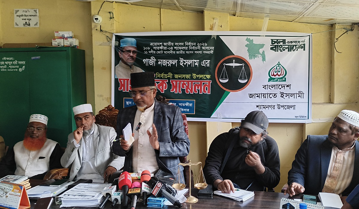 বৃহস্পতিবার (৫ জানুয়ারি) সকাল ১০টায় শ্যামনগর উপজেলা জামায়াতে কার্যালয়ে আয়োজিত এ সংবাদ সম্মেলনে সভাপতিত্ব করেন উপজেলা জামায়াতের আমীর মাওলানা আবদুর রহমান। মূল বক্তব্য দেন সাবেক এমপি গাজী নজরুল ইসলাম। এ সময় জামায়াতের জেলা ও উপজেলা পর্যায়ের নেতৃবৃন্দ এবং স্থানীয় সাংবাদিকরা উপস্থিত ছিলেন।