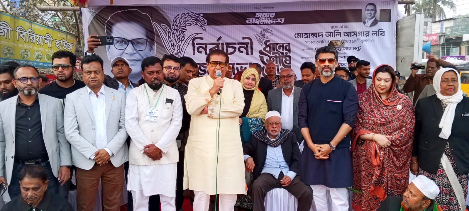 রবিবার ফুলতলা স্বাধীনতা চত্ত্বরে ধানের শীষ প্রতিকের নির্বাচনী বিশাল জনসভায় প্রধান অতিথির বক্তৃতায় খুলনা-৫ এর বিএনপি মনোনীত ধানের শীষ প্রতীকের সংসদ সদস্য প্রার্থী আলি আসগার লবি একথা বলেন ।