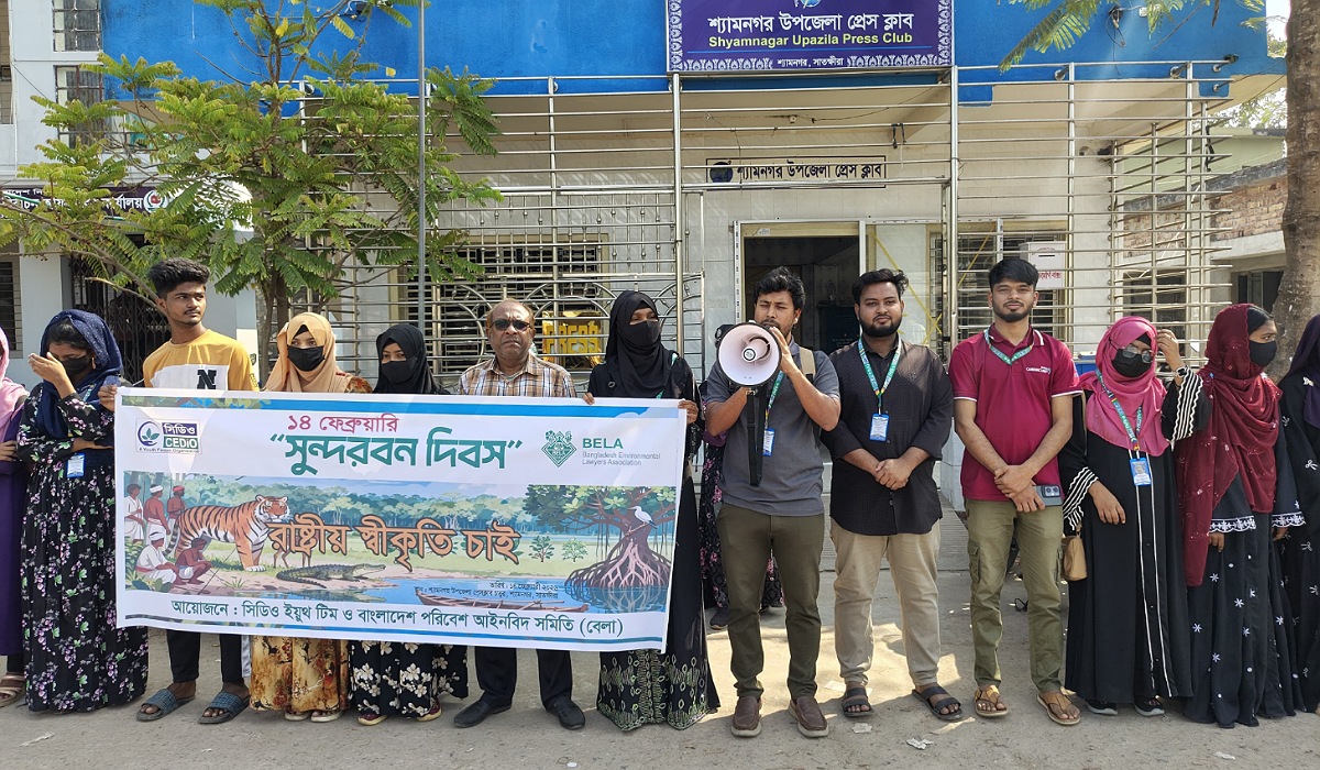 শ্যামনগর উপজেলায় (১৪ফেব্রুয়ারী) শনিবার সকালে প্রস্তাবিত সুন্দরবন দিবসকে রাষ্ট্রীয় স্বীকৃতির দাবীতে মানববন্ধন অনুষ্ঠিত হয়।