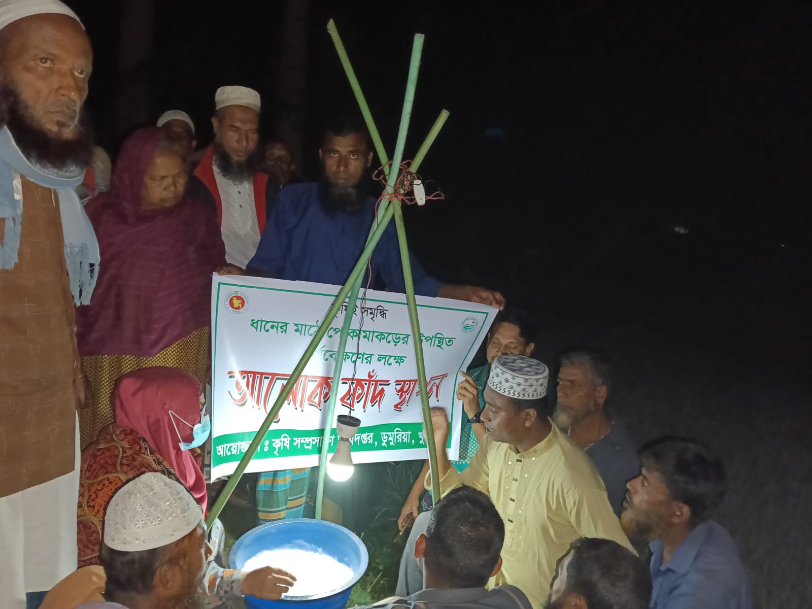ডুমুরিয়া উপজেলা কৃষি অফিসার কৃষিবিদ মোঃ নাজমুল হুদা বলেন আলোক ফাঁদ হলো একটি যান্ত্রিক পদ্ধতি, যেখানে আলোর সাহায্যে ক্ষতিকর পোকামাকড় আকৃষ্ট করে ফসল থেকে দূরে নিয়ে শনাক্ত করা হয়।এর মাধ্যমে উপকারী ও ক্ষতিকর পোকার উপস্থিতির হার নির্ণয় করা হয়।
