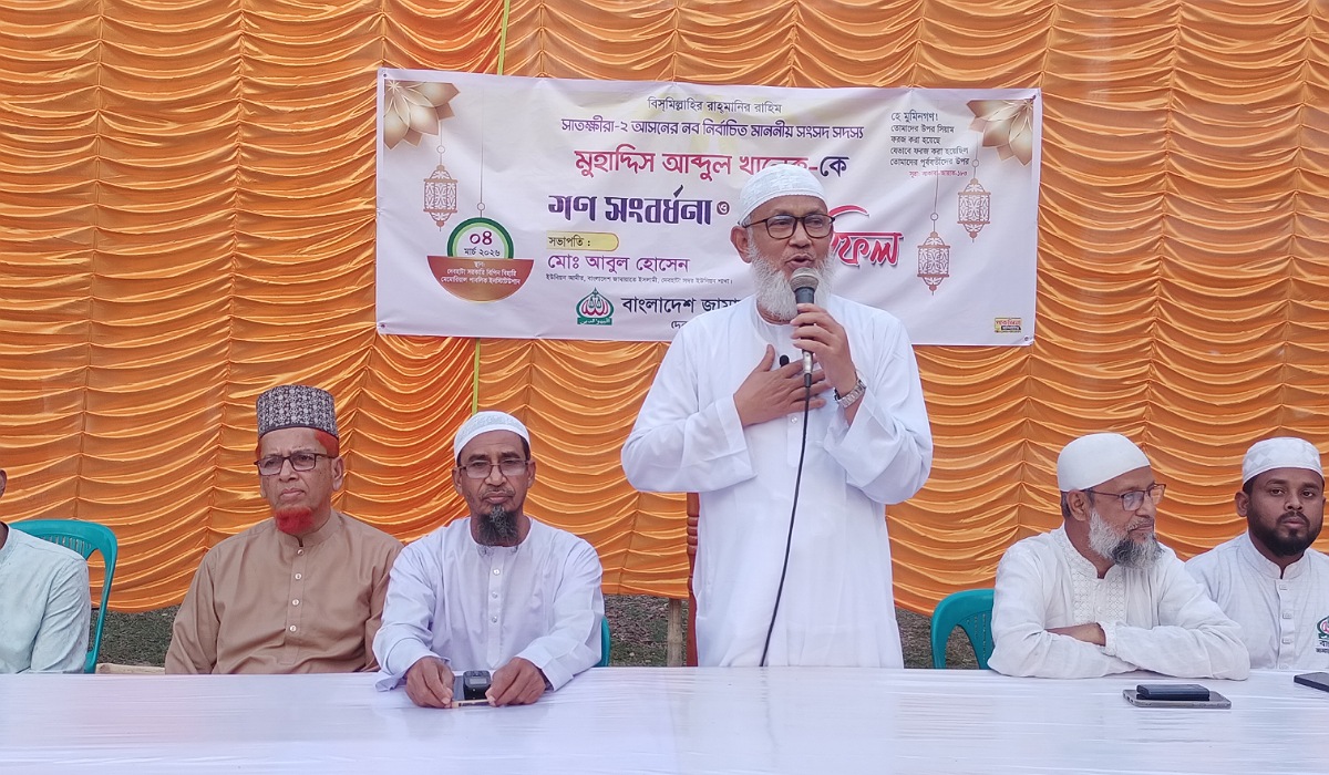 দেবহাটা সদর ইউনিয়ন জামায়াতের আয়োজনে সাতক্ষীরা-২ আসনের নবনির্বাচিত সংসদ সদস্য মুহাদ্দিস আব্দুল খালেককে গণসংবর্ধনা ও ইফতার মাহফিলে প্রধান অতিথির বক্তব্যে তিনি উল্লেখিত কথাগুলো বলেন। সদর ইউনিয়ন জামায়াতের আমীর আবুল হোসেনের সভাপতিত্বে এবং সাধারণ সম্পাদক আব্দুর রাজ্জাকের সঞ্চালনায় অনুষ্ঠিত উক্ত অনুষ্ঠানে প্রধান অতিথি হিসেবে উপস্থিত ছিলেন সাতক্ষীরা-২ আসনের নবনির্বাচিত সংসদ সদস্য মুহাদ্দিস আব্দুল খালেক।