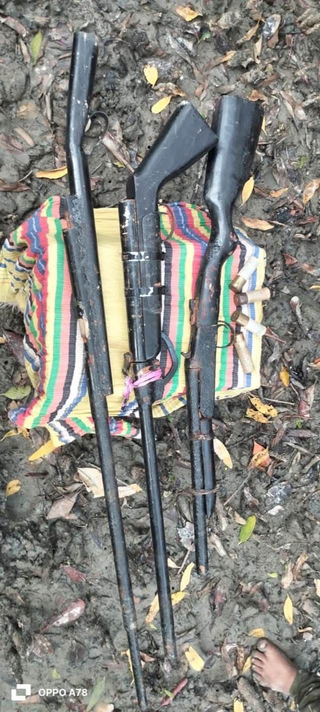 পরবর্তীতে ঘটনাস্থল ও আশপাশ এলাকায় তল্লাশি চালিয়ে তিনটি দেশীয় অস্ত্র এবং ৪টি কার্তুজ উদ্ধার করা হয়।