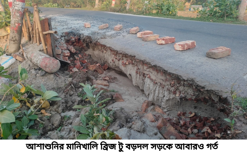 আশাশুনি-টু-বড়দল সড়কের মানিকখালি ব্রিজের সামনে আবারো বড় ধরনের গর্ত সৃষ্টি হয়ে রাস্তাটি খানা-খন্দে পরিণত হয়েছে। এতে যেকোনো মুহূর্তে বড় ধরনের দুর্ঘটনার আশঙ্কা তৈরি হয়েছে।