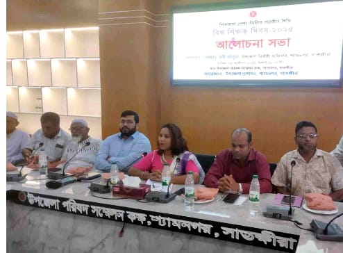সাতক্ষীরার শ্যামনগর উপজেলা প্রশাসনের আয়োজনে শ্যামনগরে বিশ্ব শিক্ষক দিবস ২০২৫ পালন উপলেক্ষ্য আলোচনা সভা অনুষ্ঠিত হয়েছে। ৫ অক্টোবর(রবিবার) সকাল ১১টায় শ্যামনগর উপজেলা পরিষদ সম্মেলন কক্ষে অনুষ্ঠিত আলোচনা সভায় সভাপতিত্ব