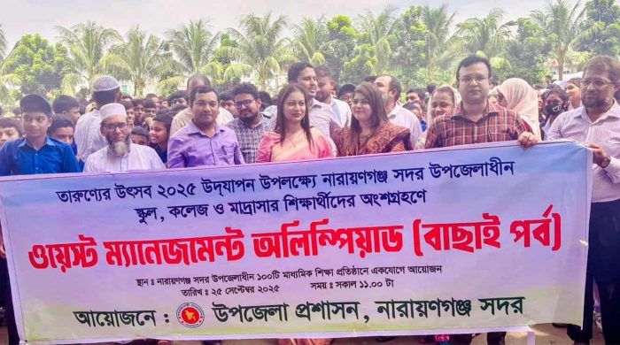 নারায়ণগঞ্জ সদর উপজেলার ১০০টি শিক্ষা প্রতিষ্ঠানে একযোগে অনুষ্ঠিত হলো “ওয়েস্ট ম্যানেজমেন্ট অলিম্পিয়াড-২০২৫। বৃহস্পতিবার (২৫ সেপ্টেম্বর) সকালে শুরু হওয়া এই অলিম্পিয়াডে প্রতিটি প্রতিষ্ঠান থেকে ১০০জন করে মোট ১০ হাজার শিক্ষার্থী