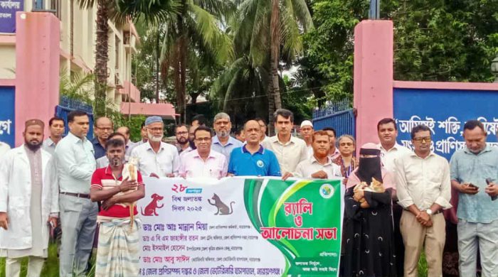 জলাতঙ্ক নির্মূলে কাজ করি সবাই মিলে” এই প্রতিপাদ্য সামনে রেখে জেলা প্রাণিসম্পদ দপ্তর ও জেলা ভেটেরিনারি হাসপাতালের আয়োজনে নারায়ণগঞ্জে বিশ্ব জলাতঙ্ক দিবস-২০২৫ উপলক্ষে সপ্তাহব্যাপী বিনামূল্যে জলাতঙ্কে টিকা প্রদান, র্যালি ও