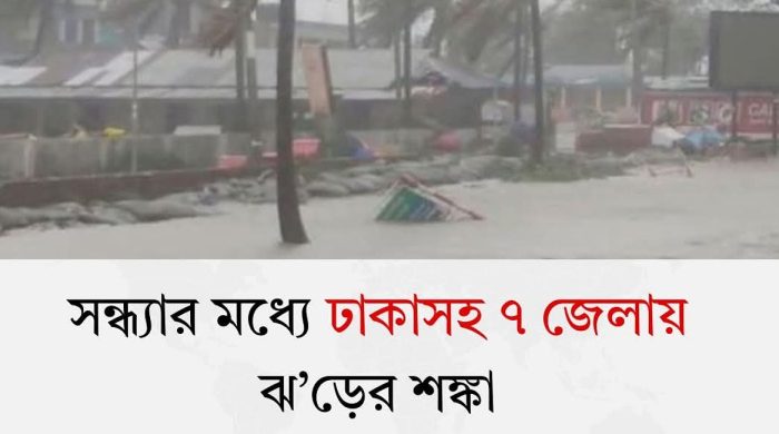 সন্ধ্যার মধ্যে রাজধানীসহ দেশের সাত জেলার ওপর দিয়ে ঝড় বয়ে যাওয়ার আশঙ্কা রয়েছে। সেইসঙ্গে বজ্রসহ বৃষ্টিও হতে পারে। রোববার (৫ অক্টোবর) সকাল সাড়ে ৯টা থেকে সন্ধ্যা ৬টা পর্যন্ত দেশের
